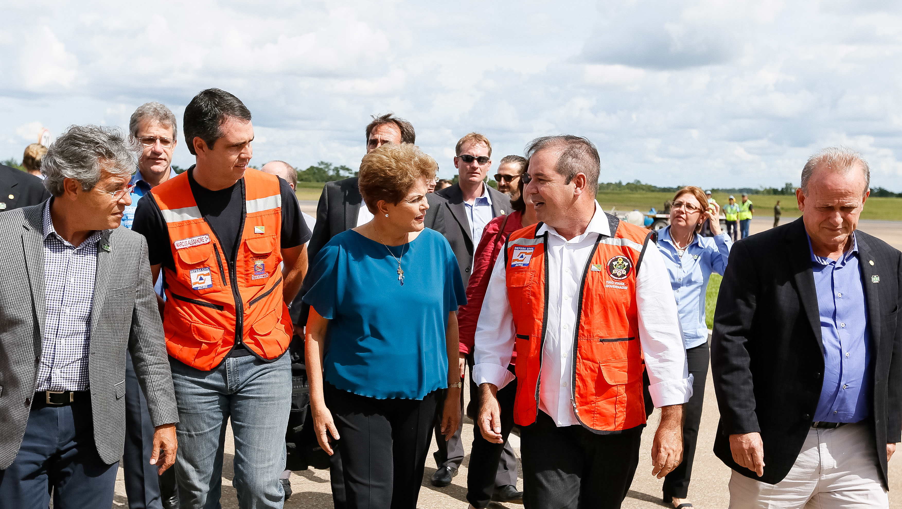 Presidenta Dilma Rousseff durante chegada à cidade de Rio Branco para reunião de coordenação sobre áreas atingidas pelas enchentes. (Rio Branco - AC, 11/03/2015)