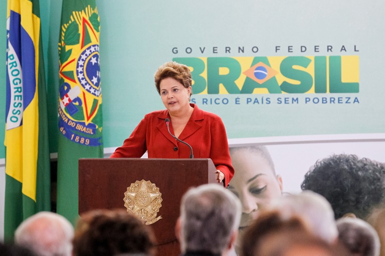 Presidenta Dilma Rousseff cumprimenta e posa para foto com os médicos após sanção da lei que institui o Programa Mais Médicos. (Brasília - DF, 22/10/2013)