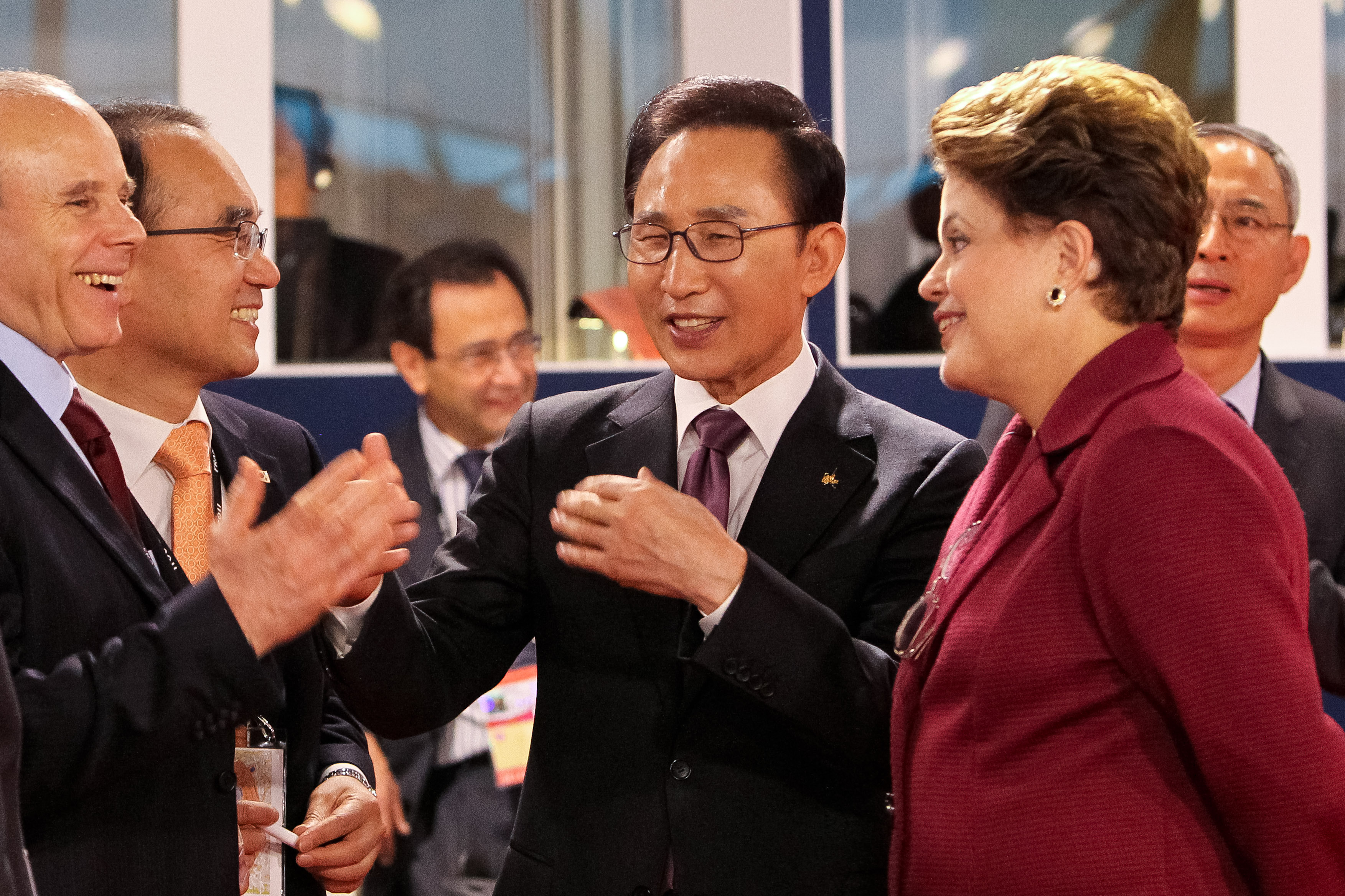 Presidenta Dilma Rousseff conversa com o Presidente da Coréia Lee Myung-bak durante sessão de trabalho na Cúpula de Líderes do G20. (Cannes - França, 04/11/2011)