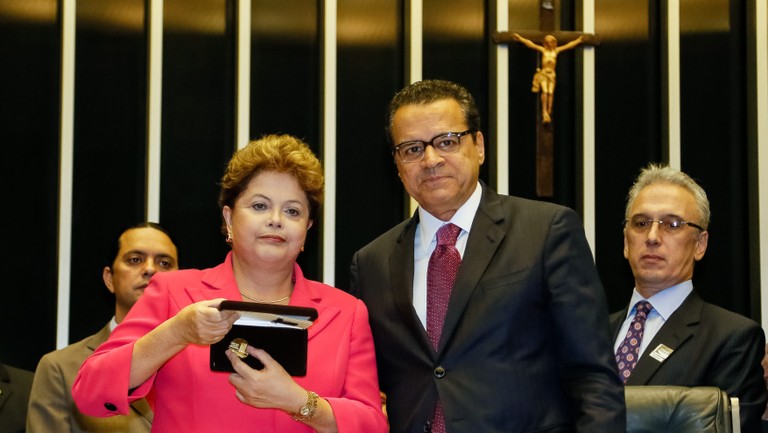 Presidenta Dilma Rousseff junto com o Presidente da Câmara dos Deputados, Henrique Eduardo Alves após sessão solene em homenagem aos 25 anos da promulgação da Constituição Federal. (Brasília - DF, 09/10/2013)