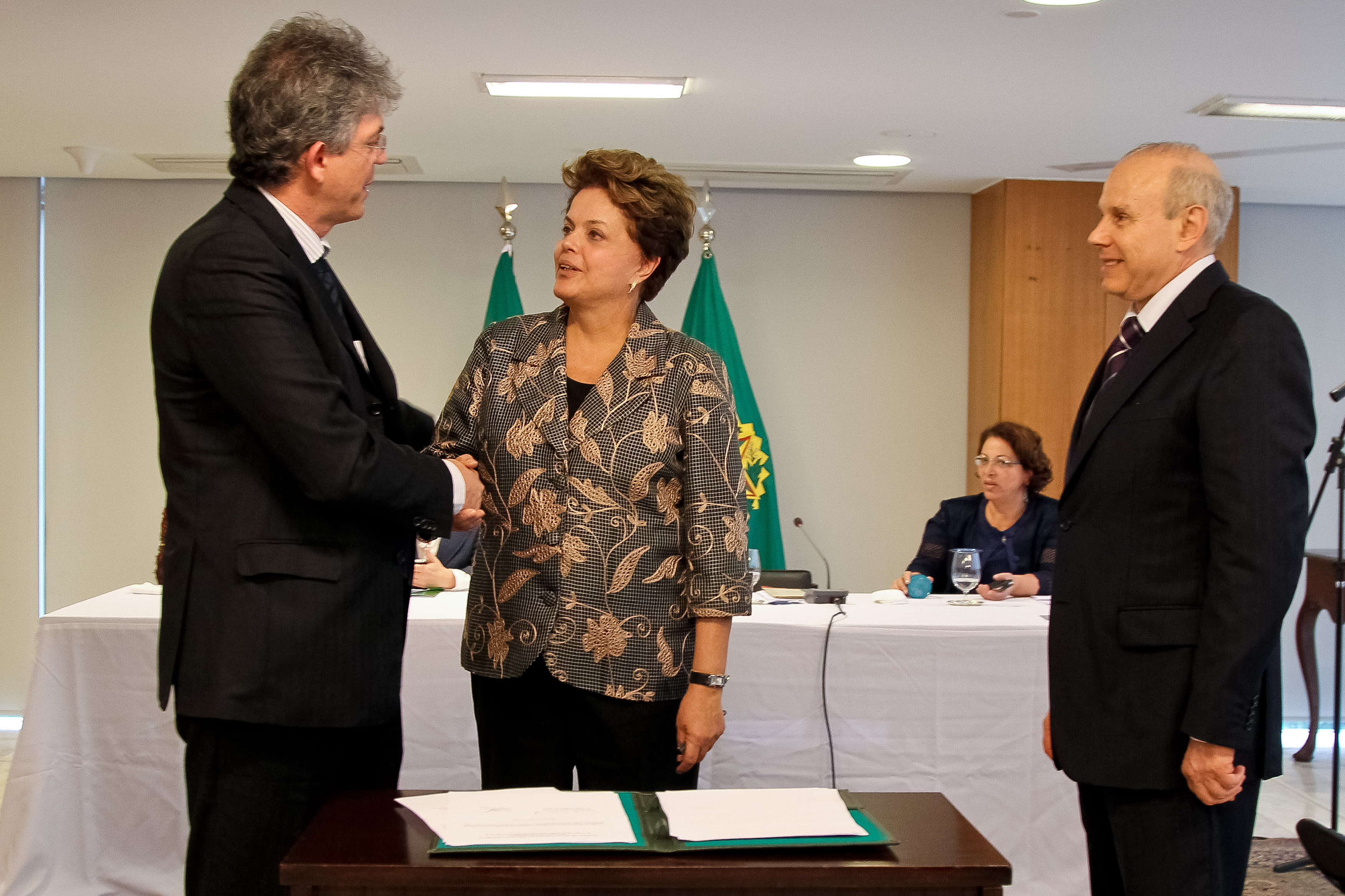 Presidenta Dilma Rousseff durante assinatura de termo de entendimento para ampliação de crédito fiscal dos estados do Acre, Amazonas, Bahia, Ceará, Mato Grosso, Paraíba, Pernambuco, Piauí, Rondônia e Sergipe. (Brasília - DF, 27/10/2011)
