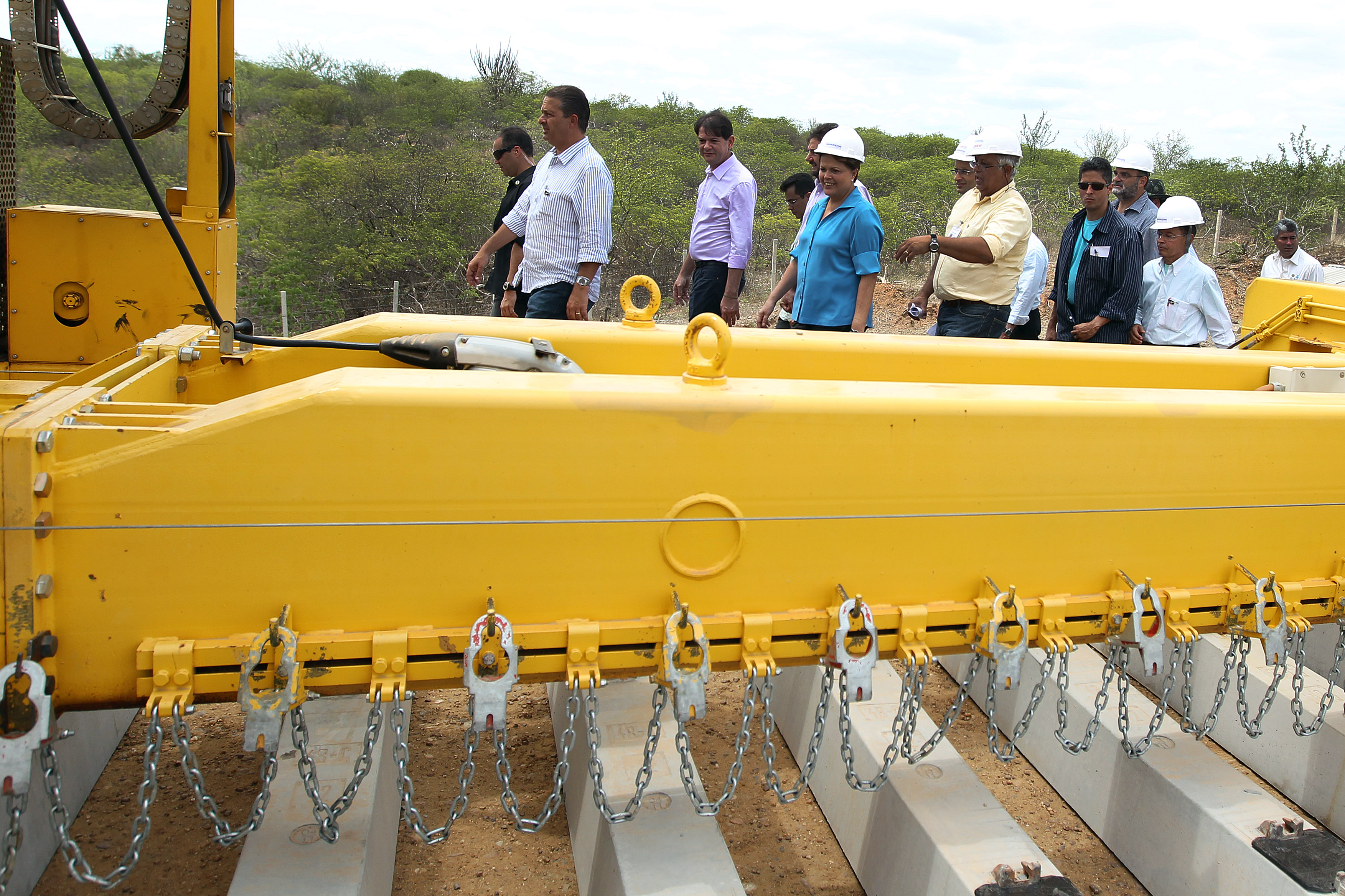Presidenta Dilma Rousseff durante vistoria à frente de lançamento da superestrutura da malha ferroviária do Lote TS1. (Parnamirim - PE, 09/02/2012)