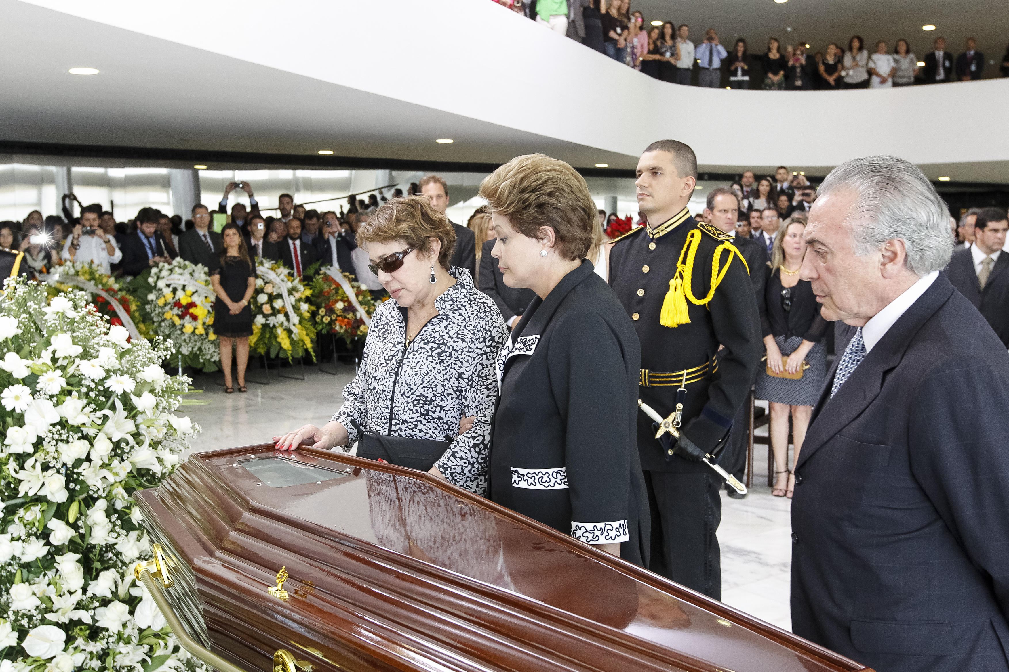 Presidenta Dilma Rousseff ao lado da Srª Vera Lúcia Niemeyer e o Vice-Presidente Michel Temer prestam homenagens durante velório do arquiteto Oscar Niemeyer no Palácio do Planalto. (Brasília - DF, 06/12/2012)