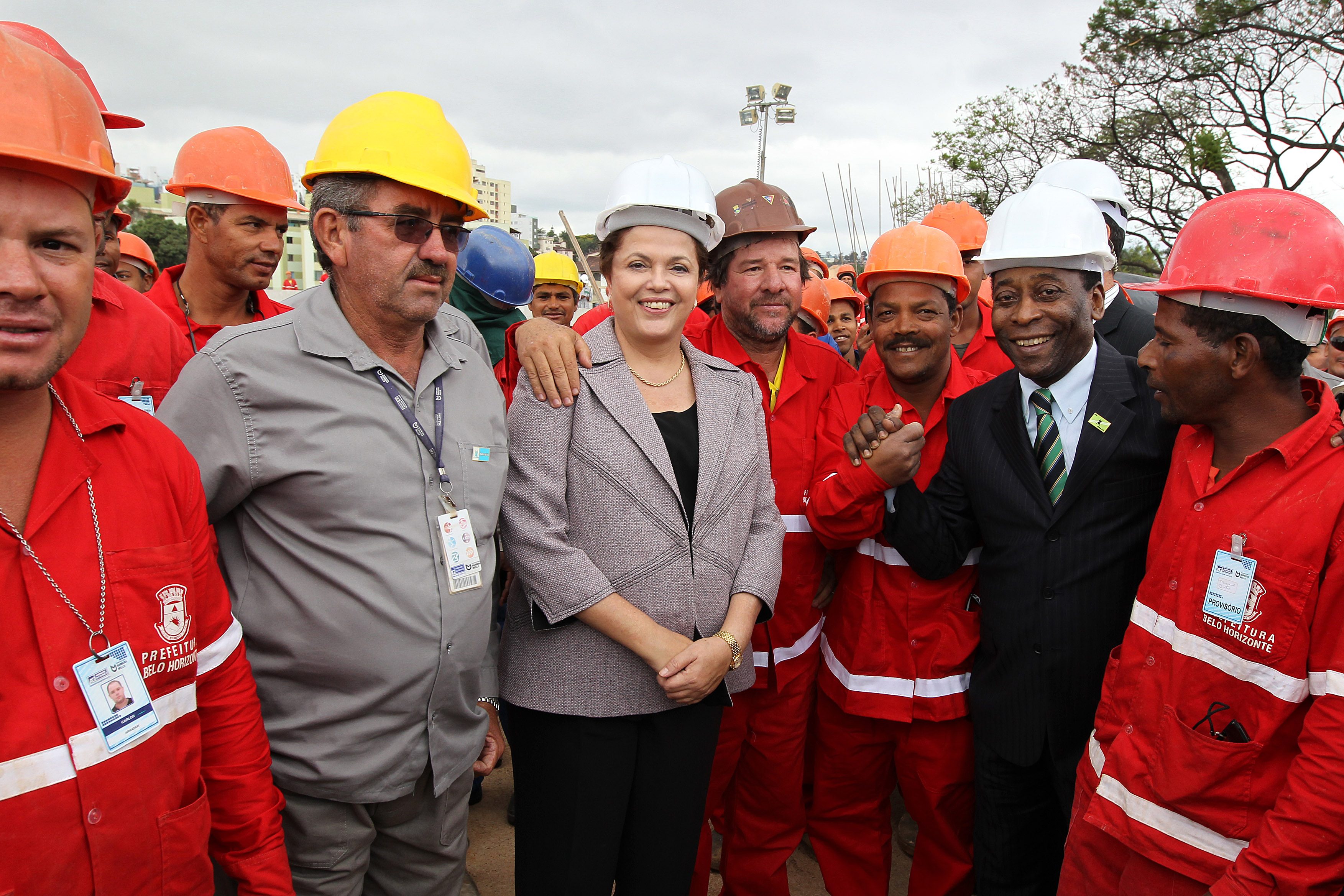 Presidenta Dilma Rousseff acompanhada de Pelé, posa para fotos com trabalhadores durante visita às obras do Trânsito Rápido de Ônibus ( TRO ) Antônio Carlos. (Belo Horizonte - MG 16/09/2011)