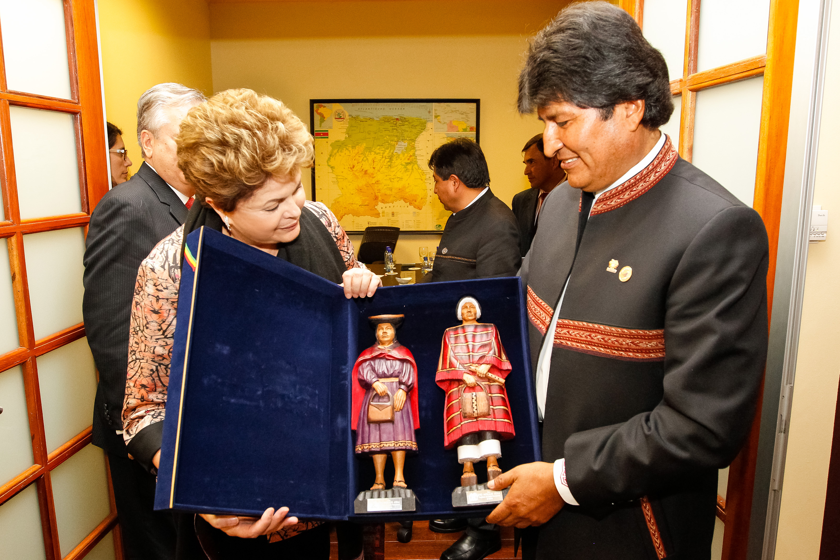 Presidenta Dilma Rousseff após encontro bilateral com o Presidente da Bolívia, Evo Morales. (Paramaribo - Suriname, 30/08/2013).