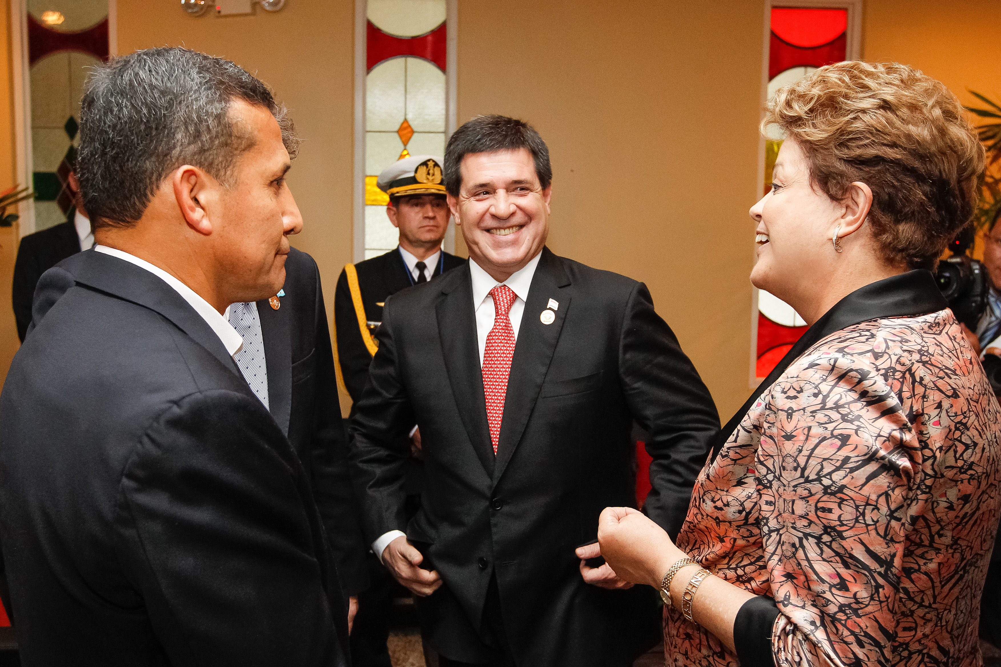 Presidenta Dilma Rousseff cumprimenta o Presidente do Paraguai, Horacio Cartes e o Presidente do Peru, Ollanta Humala. (Paramaribo - Suriname, 30/08/2013).