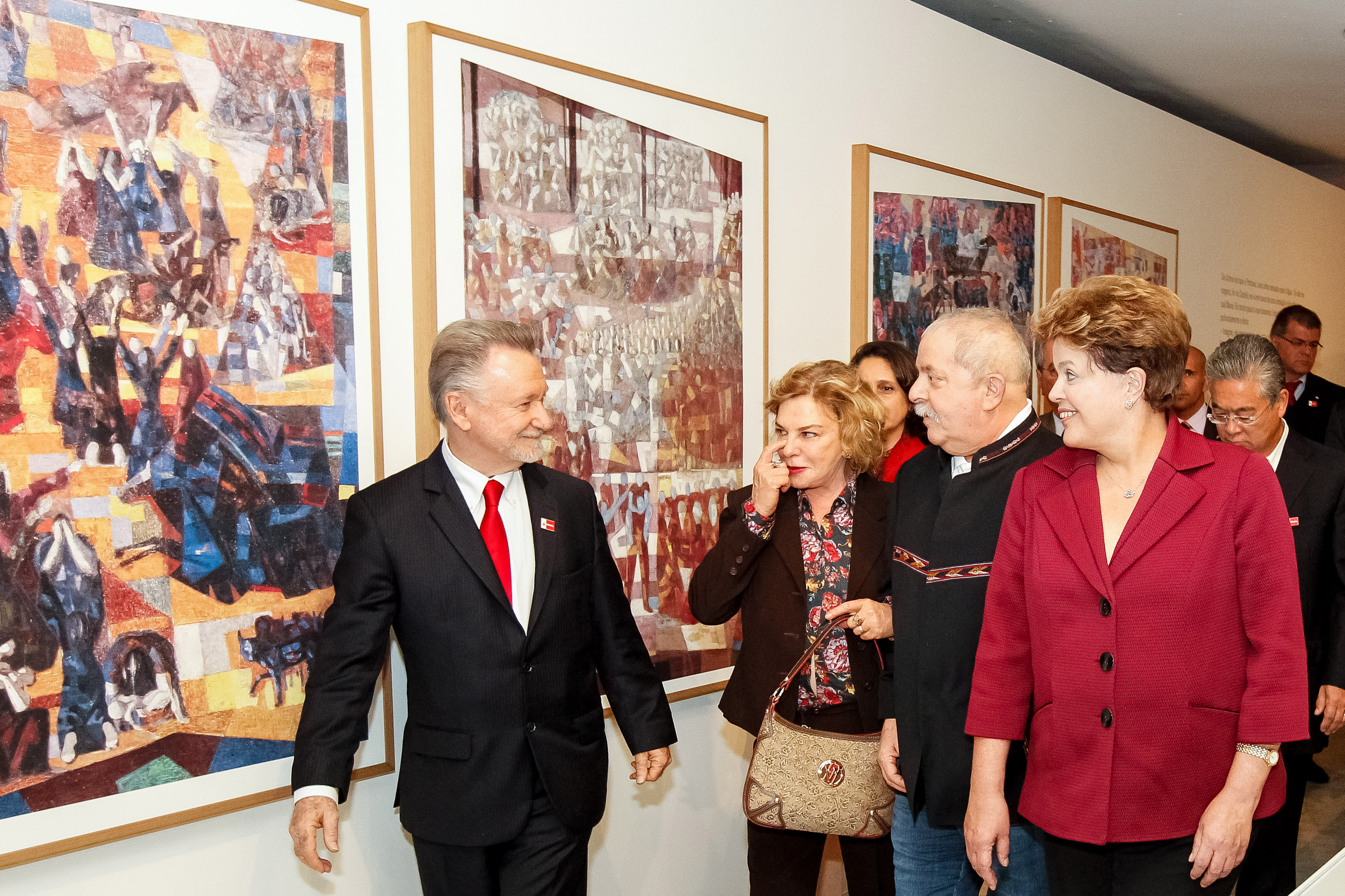 Presidenta Dilma Rousseff acompanhada do ex-Presidente Lula, Dona Marisa e do filho de Portinari senhor João Cândido Portinari, durante visita à exposição dos painéis "Guerra e Paz " de Cândido Portinari. (São Paulo - SP, 18/05/2012)