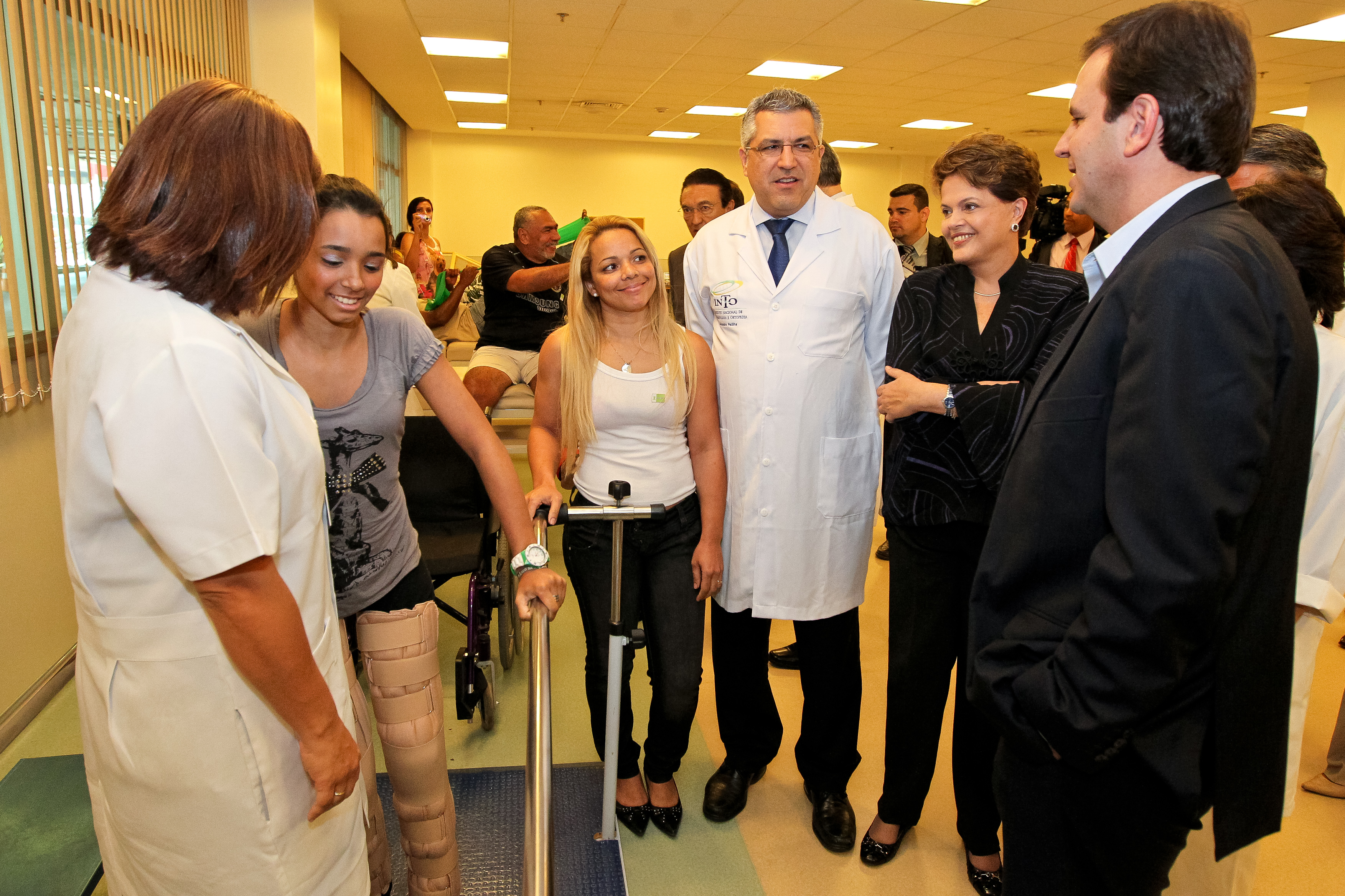 Presidenta Dilma Rousseff observa a recuperação da jovem Thayane Tavares Monteiro durante a visita as inauguração das novas instalações do Instituto Nacional de Traumatologia e Ortopedia Jamil Haddad (Into). (Rio de Janeiro - RJ, 25/11/2011)