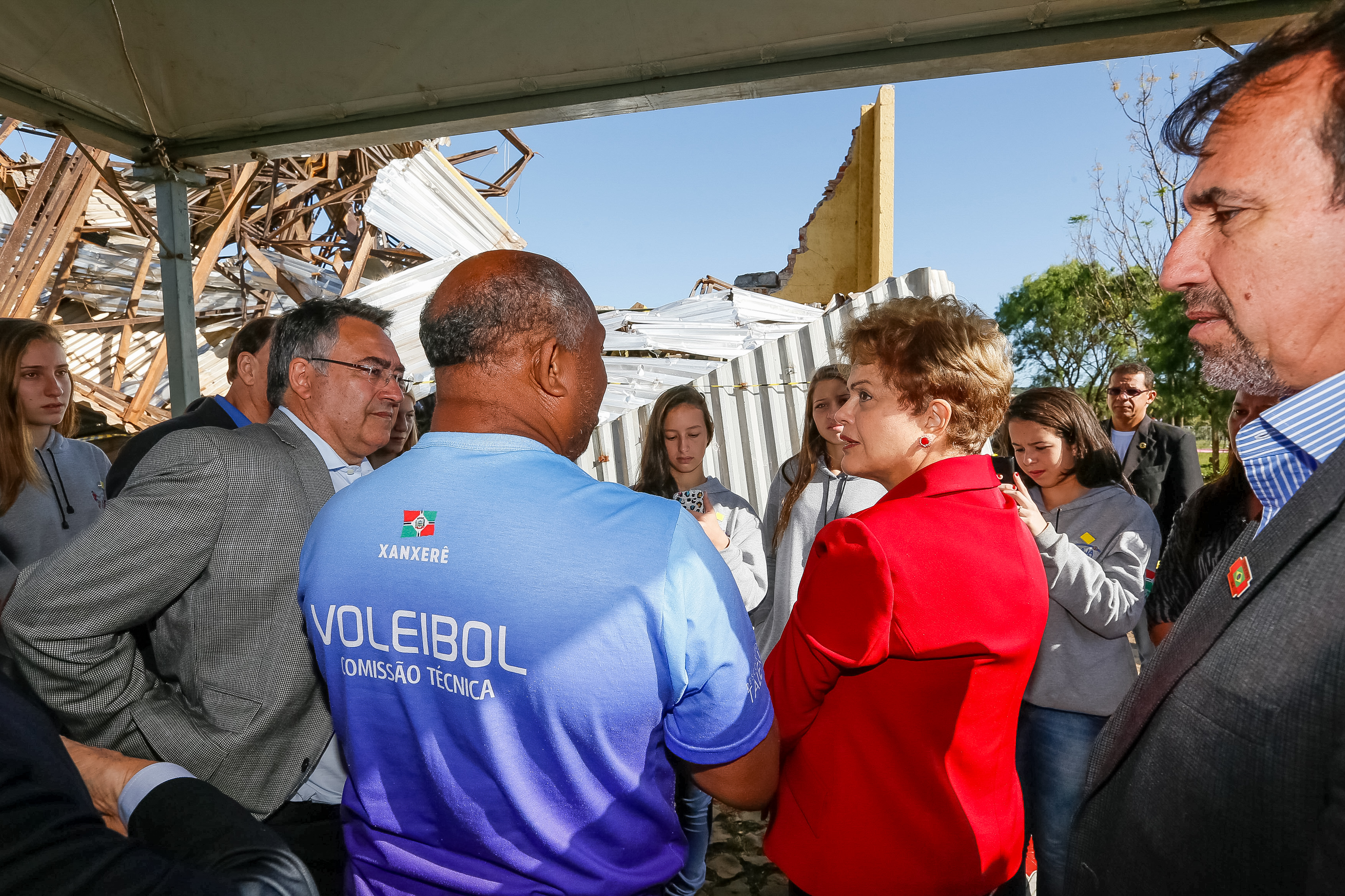 Presidenta Dilma Rousseff conversa com sobreviventes da queda do ginásio Ivo Sguissardi, durante visita às áreas atingidas por tornado. (Xanxerê - SC, 27/04/2015)