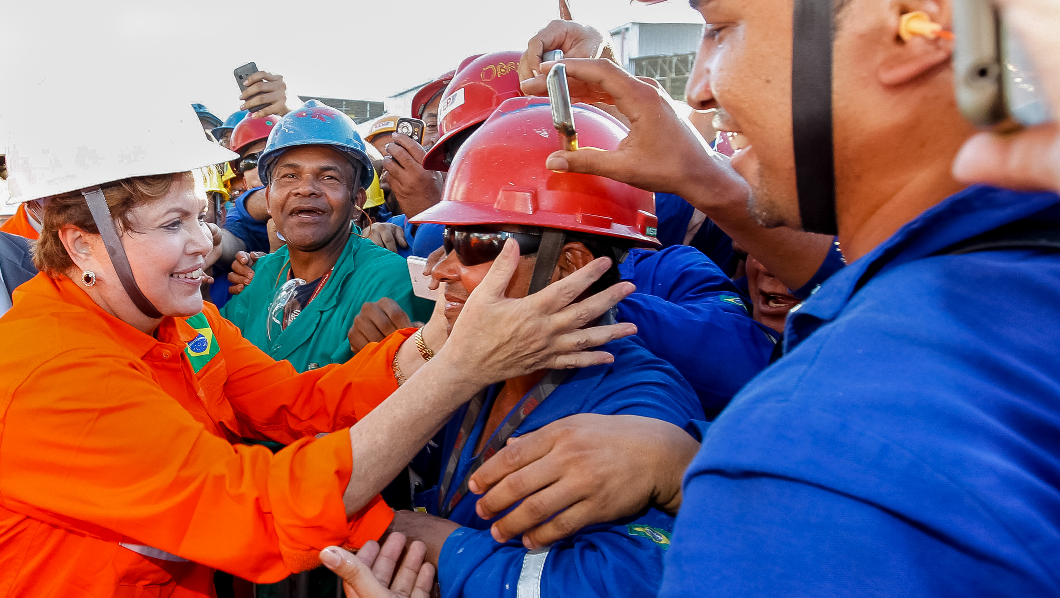 Presidenta Dilma Rousseff cumprimenta trabalhadores durante visita às obras da P-74 no Estaleiro Inhaúma. (Rio de Janeiro - RJ, 11/09/2013)