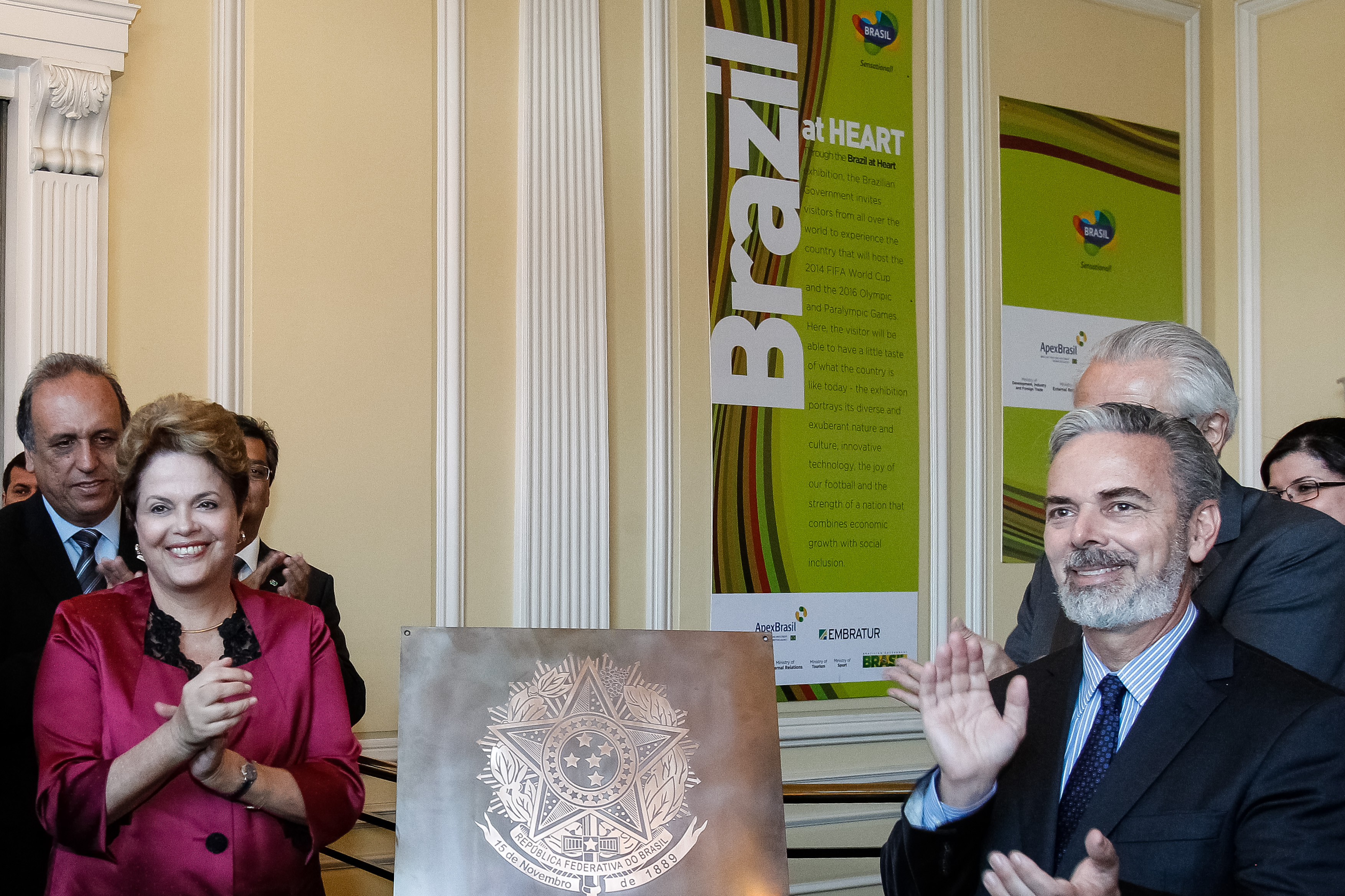 Presidenta Dilma Rousseff durante visita inaugural à exibição sobre Ciência e Tecnologia na Área de Esportes, na Chancelaria da Embaixada do Brasil. (Londres - Inglaterra, 26/07/2012)