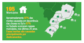 Municípios monitorados nas regiões sul e sudeste com risco de desastres