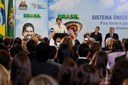 Presidenta Dilma Rousseff e o presidente do Conselho Nacional de Assistência Social, Carlos Ferrari, durante cerimônia de sanção do projeto de lei que institui o Sistema Único de Assistência Social. Brasília-DF, 06/07/2011