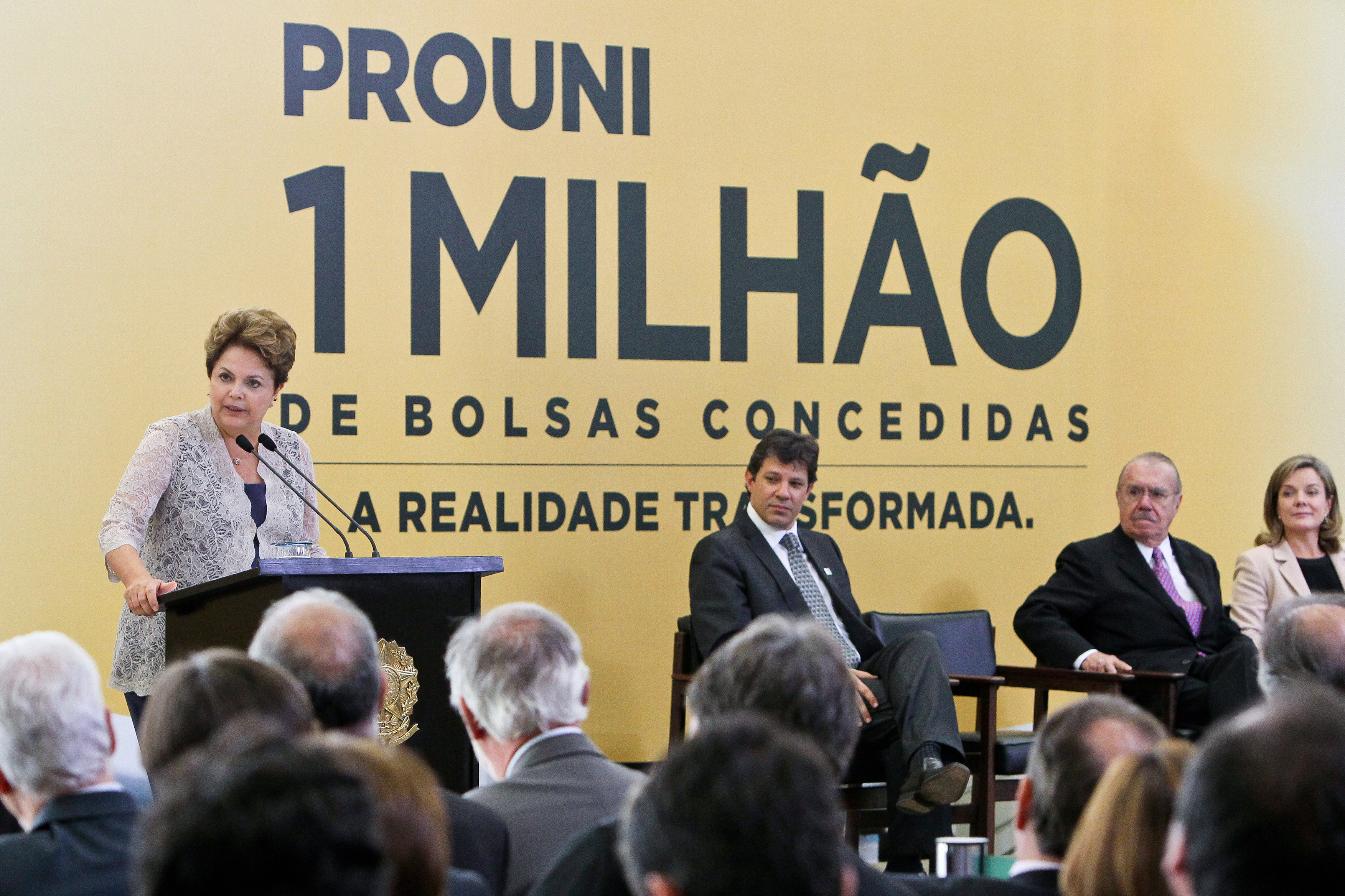Presidenta Dilma Rousseff durante cerimônia alusiva à concessão de 1 milhão de bolsas do ProUni, Programa Universidade para Todos. Brasília, 23/01/2012
