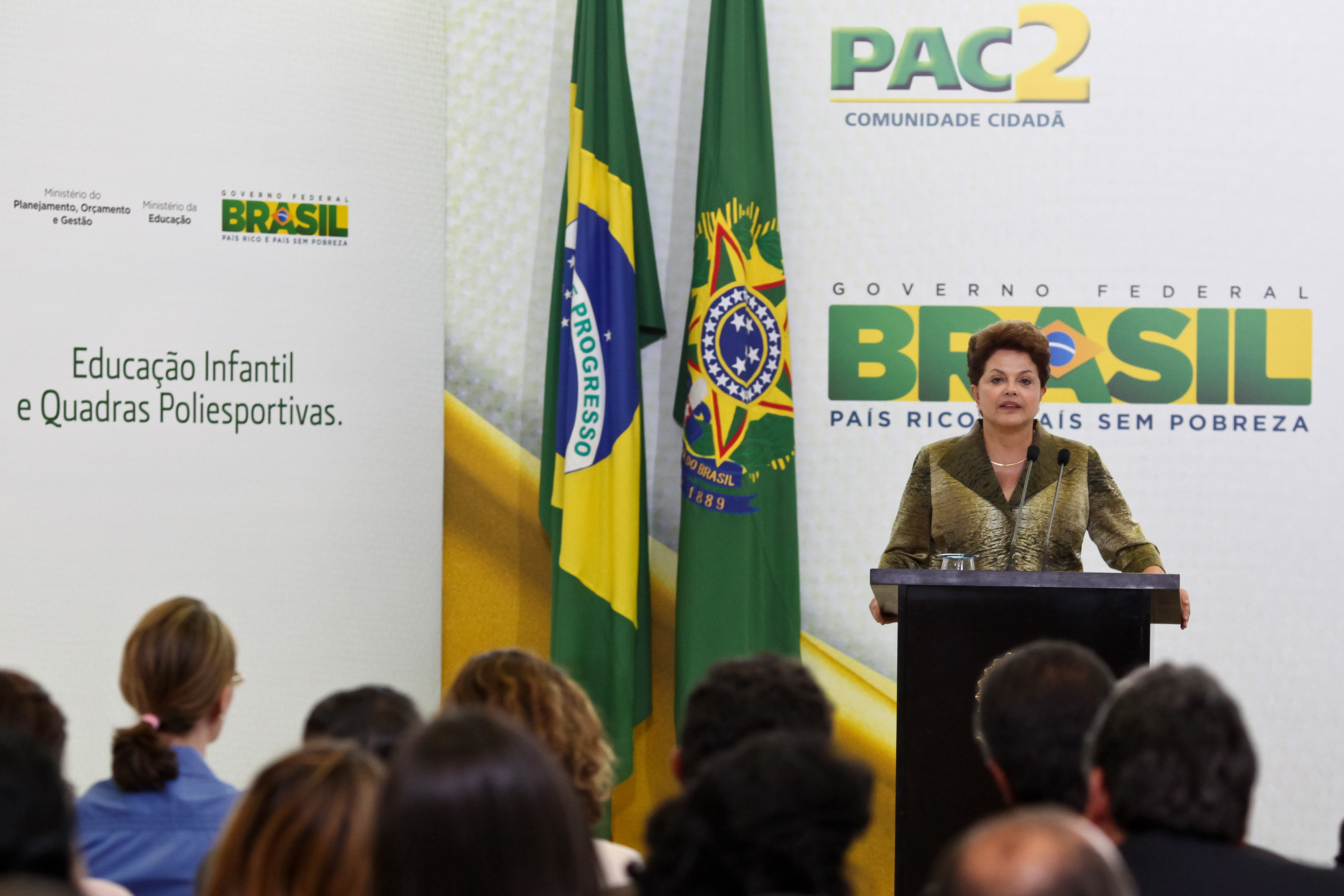 Presidenta Dilma Rousseff durante cerimônia de abertura de nova seleção para unidades de educação infantil e quadras poliesportivas escolares do PAC 2, no Palácio do Planalto. Brasília-DF, 15/09/2011