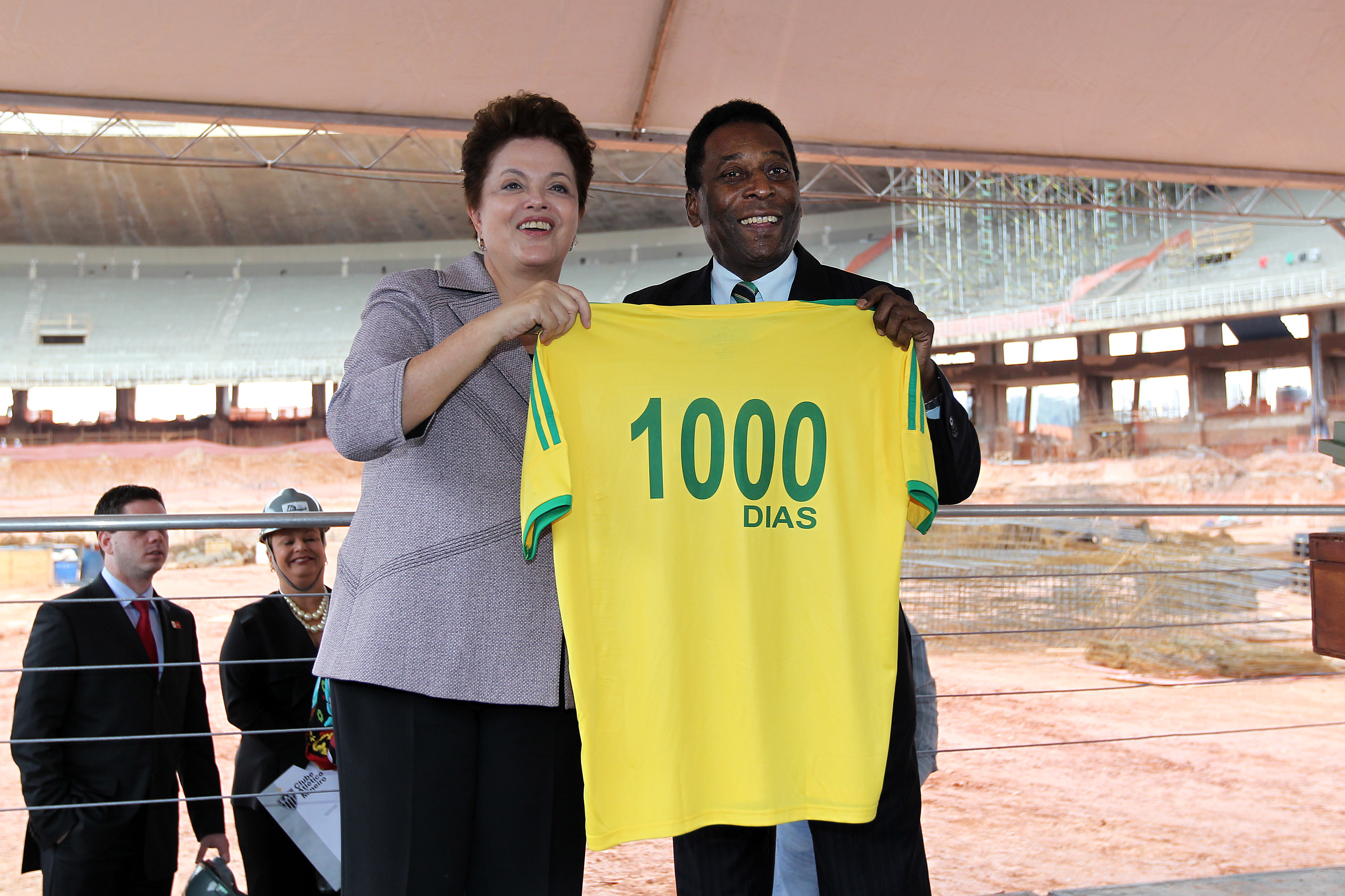 Presidenta Dilma Rousseff acompanhada de Pelé, durante visita as obras de Revitalização do Estádio Governador Magalhães Pinto - Mineirão. Belo Horizonte-MG, 16/09/2011