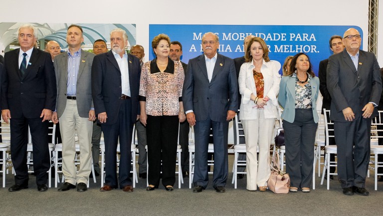 Presidenta Dilma Rousseff posa para foto com Prefeitos do Estado da Bahia antes da cerimônia de anúncio de investimentos do PAC Mobilidade Urbana e assinatura dos contratos de metrô e de corredores. Salvador - BA, 15/10/2013