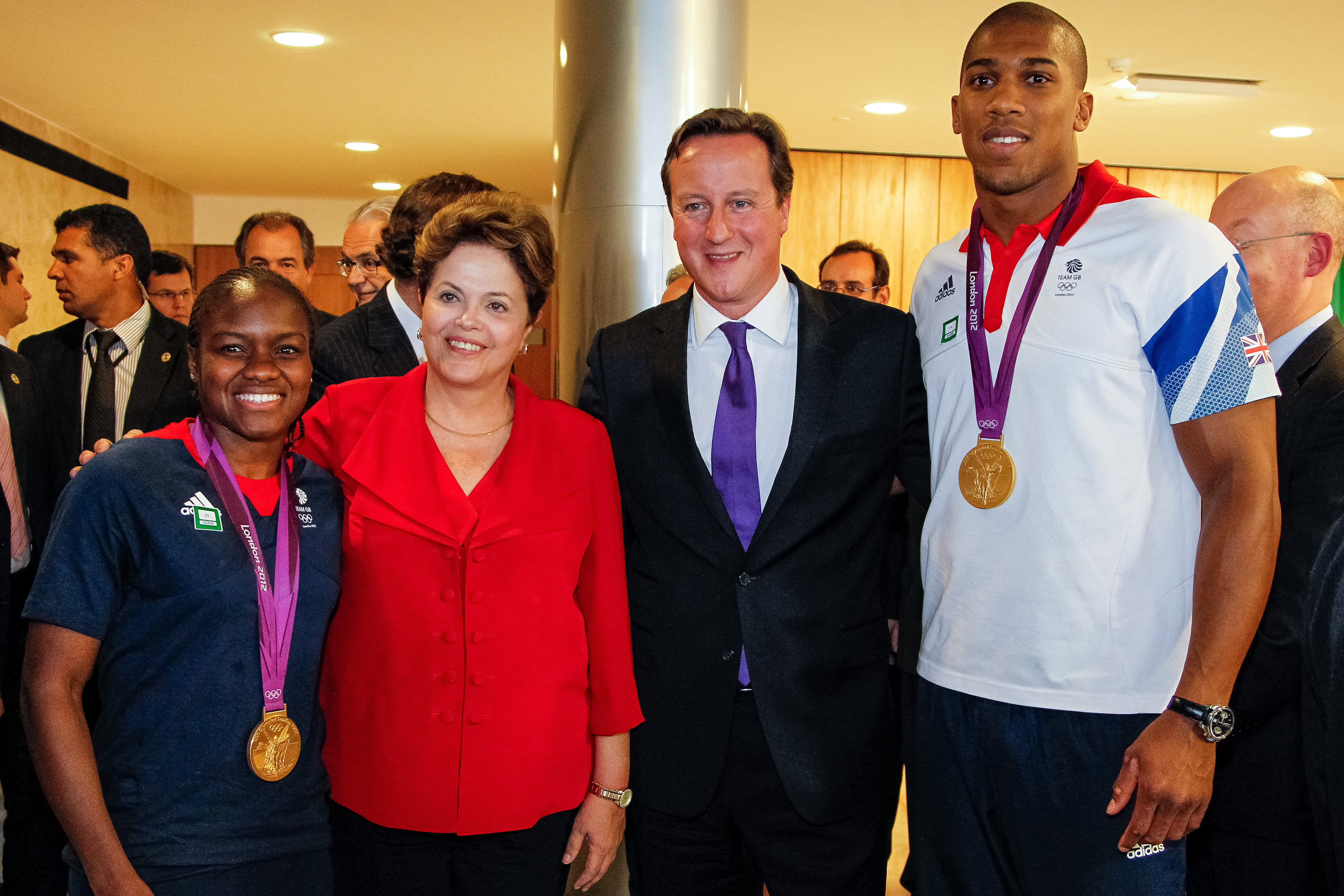 Presidenta Dilma Rousseff posa para fotos com atletas ingleses após a cerimônia de assinaturas de atos e declaração à imprensa, no Palácio do Planalto. Brasília-DF, 28/09/2012