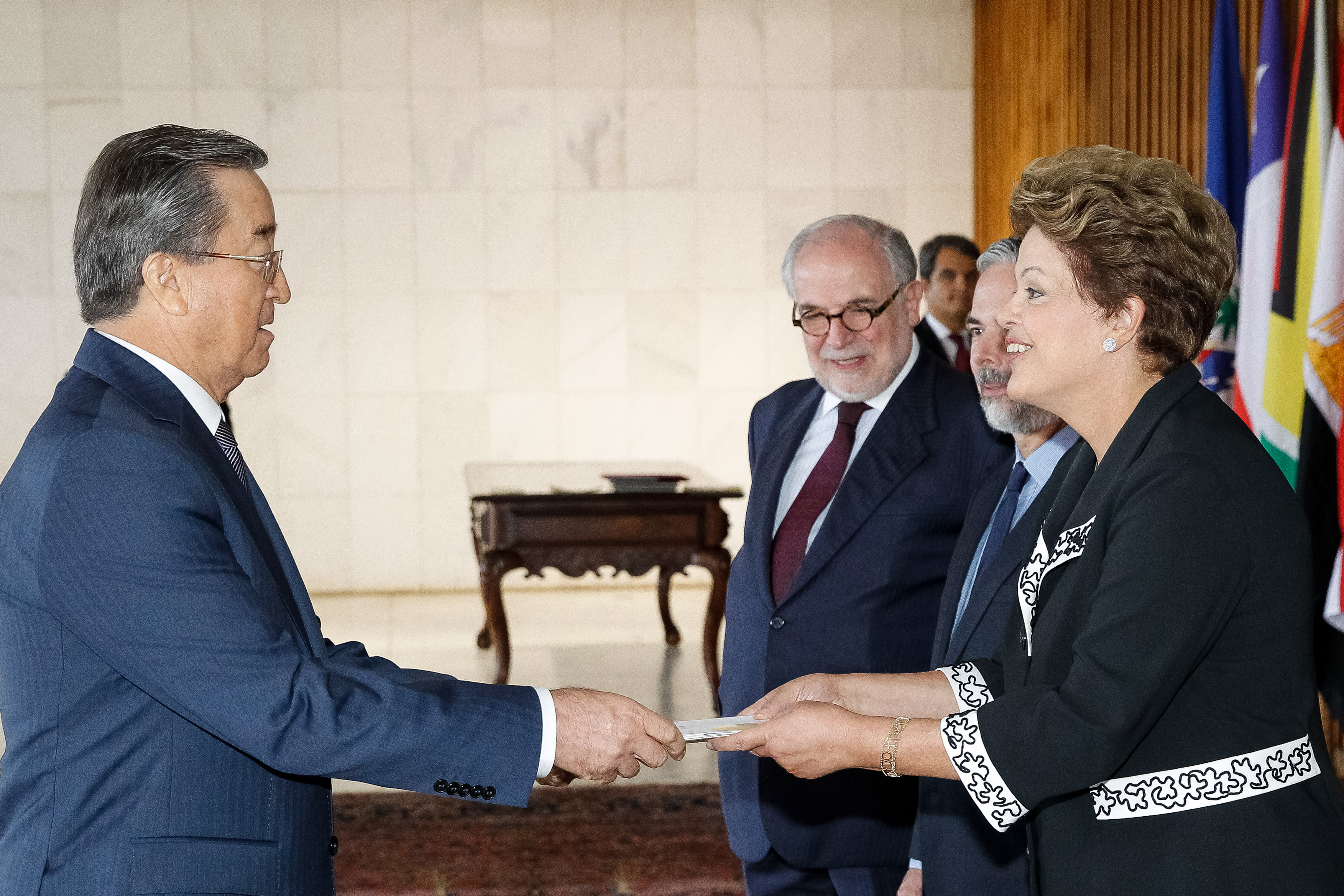 Presidenta Dilma Rousseff recebe credenciais do Sr. Bakytzhan Ordabayev, embaixador da República do Cazaquistão durante cerimônia no Palácio Itamaraty. Brasília - DF, 23/01/2013