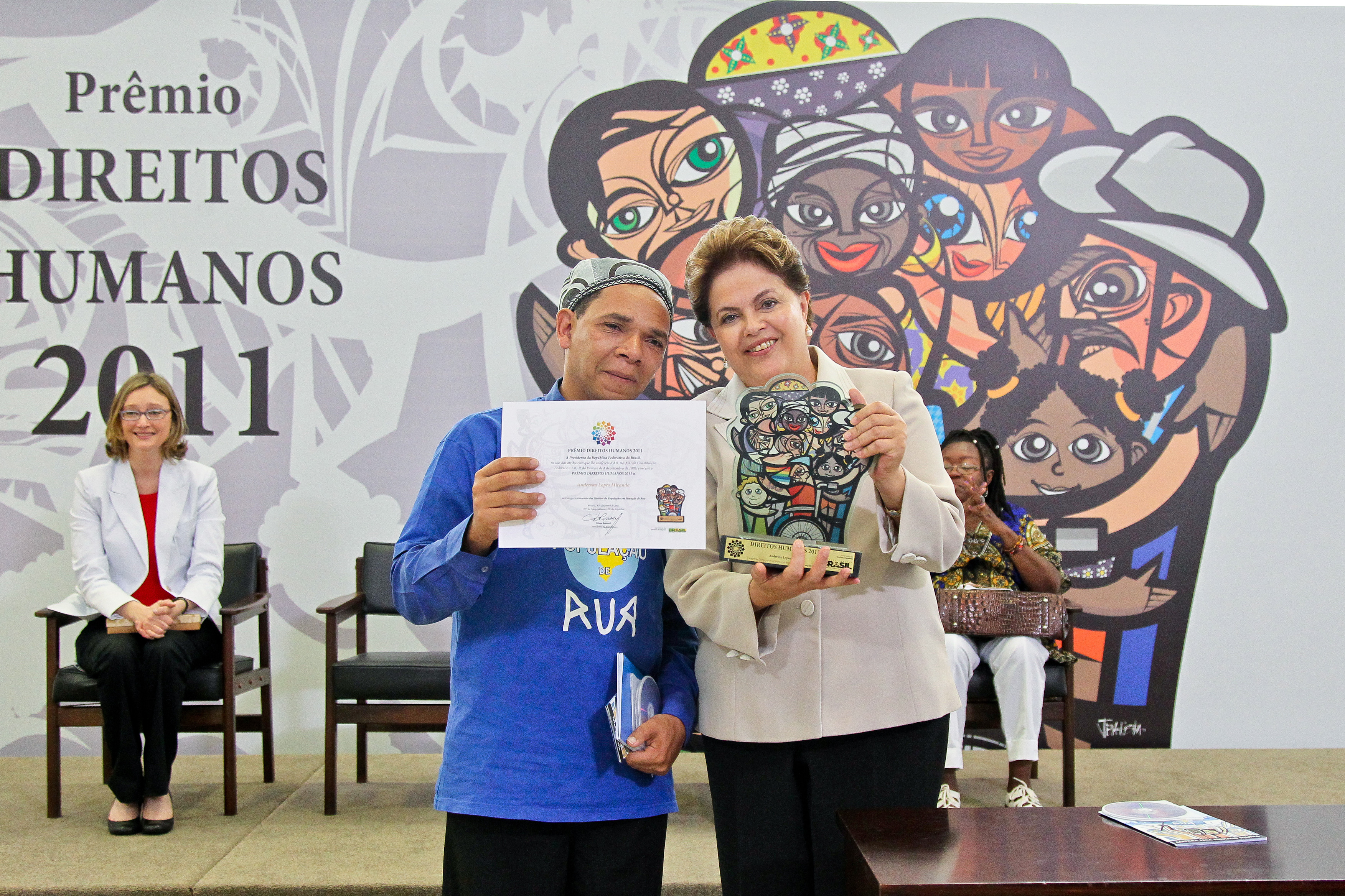 Presidenta Dilma Rousseff entrega o Prêmio Direitos Humanos 2011 na categoria garantia dos direitos da população em situação de rua, ao senhor Anderson Lopes Miranda. Brasília - DF, 09/12/2011