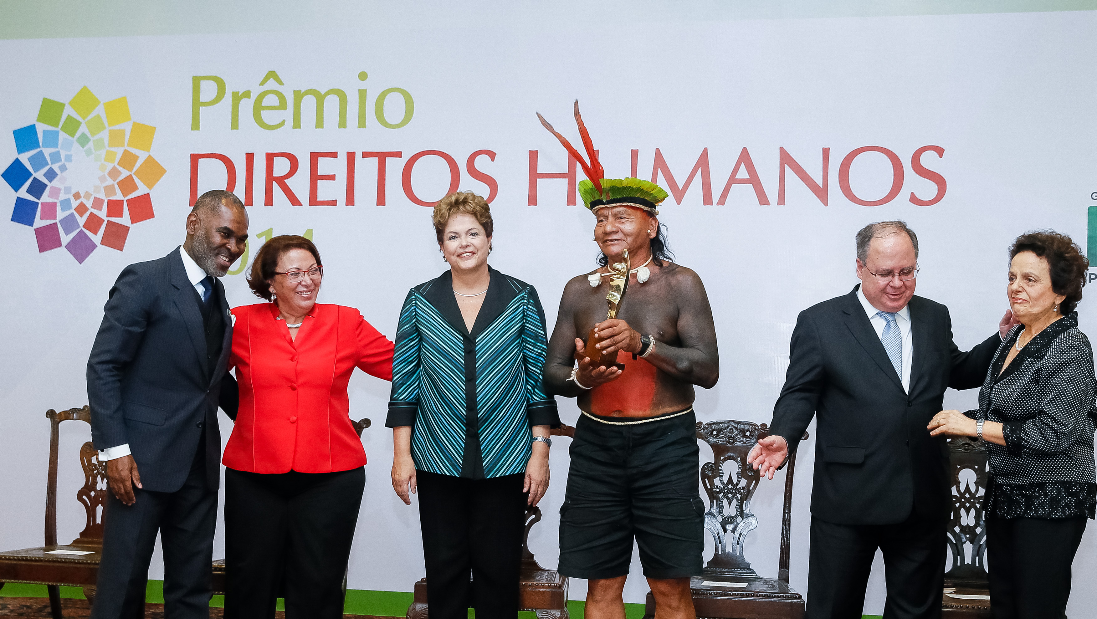 Presidenta Dilma Rousseff entrega o prêmio ao Cacique Damião na categoria Garantia dos Direitos dos Povos Indígenas, durante cerimônia de entrega do Prêmio Direitos Humanos 2014 no Palácio do Itamaraty. Brasília-DF, 10/12/2014