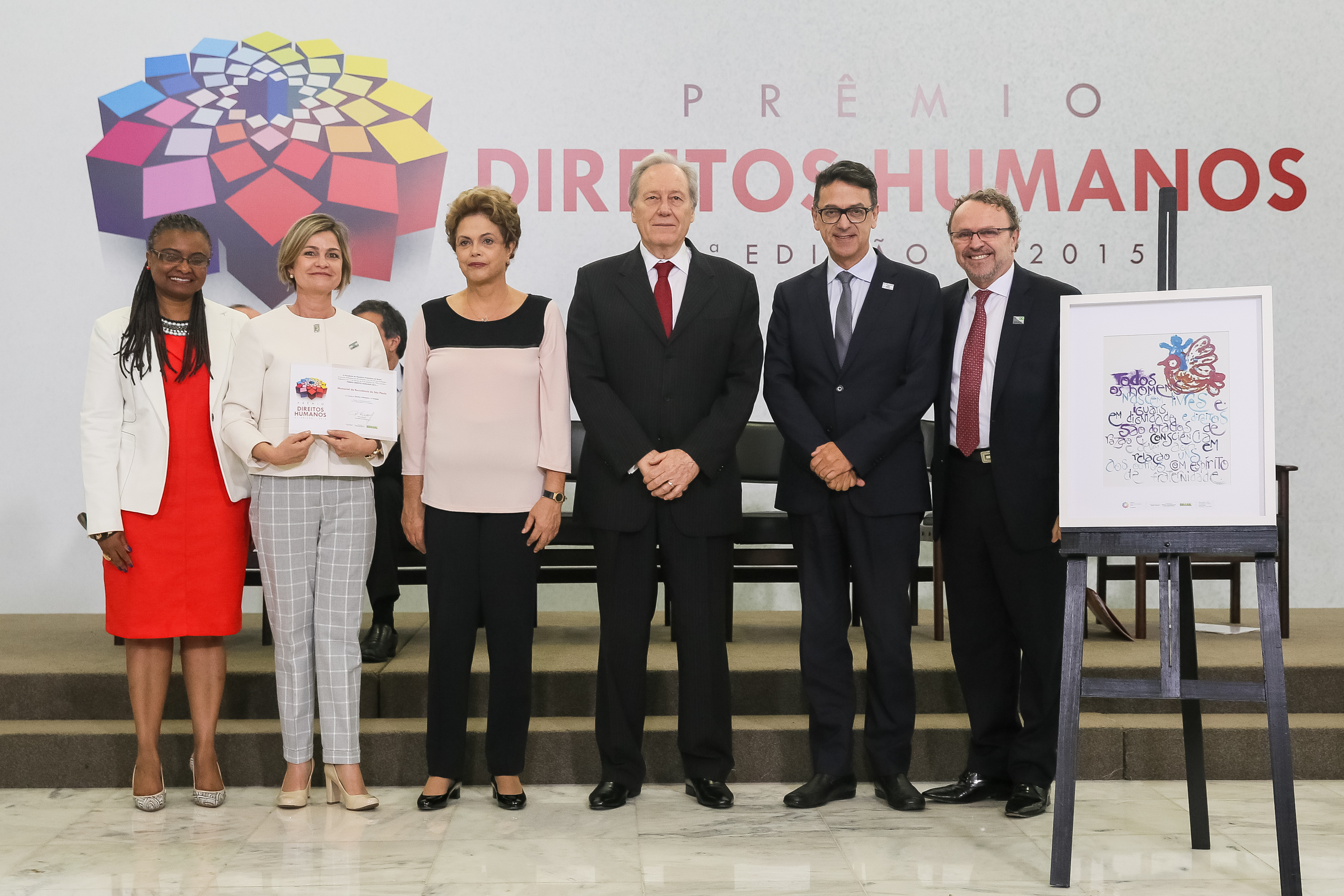 Presidenta Dilma Rousseff entrega o prêmio “Categoria Direito à Memória e à Verdade” ao Memorial da resistência de São Paulo, representado por Katia Regina Filipini Neves, Marcelo Matos na entrega do Prêmio Direitos Humanos 2015 - 21ª Edição. Brasília-DF, 11/12/2015
