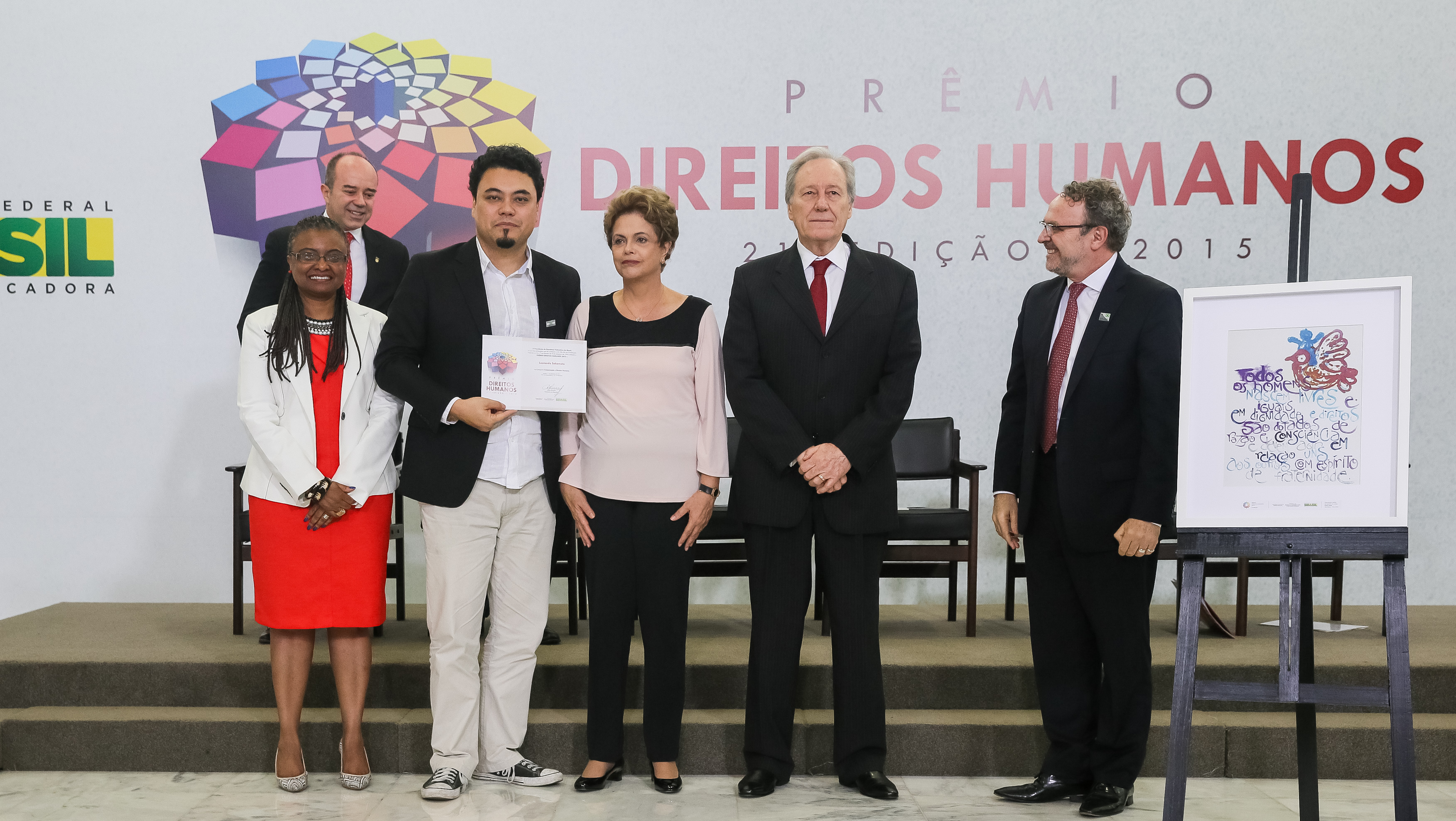 Presidenta Dilma Rousseff entrega o prêmio “Categoria Comunicação e Direitos Humanos” ao Senhor Leonardo Sakamoto na entrega do Prêmio Direitos Humanos 2015 - 21ª Edição. Brasília-DF, 11/12/2015