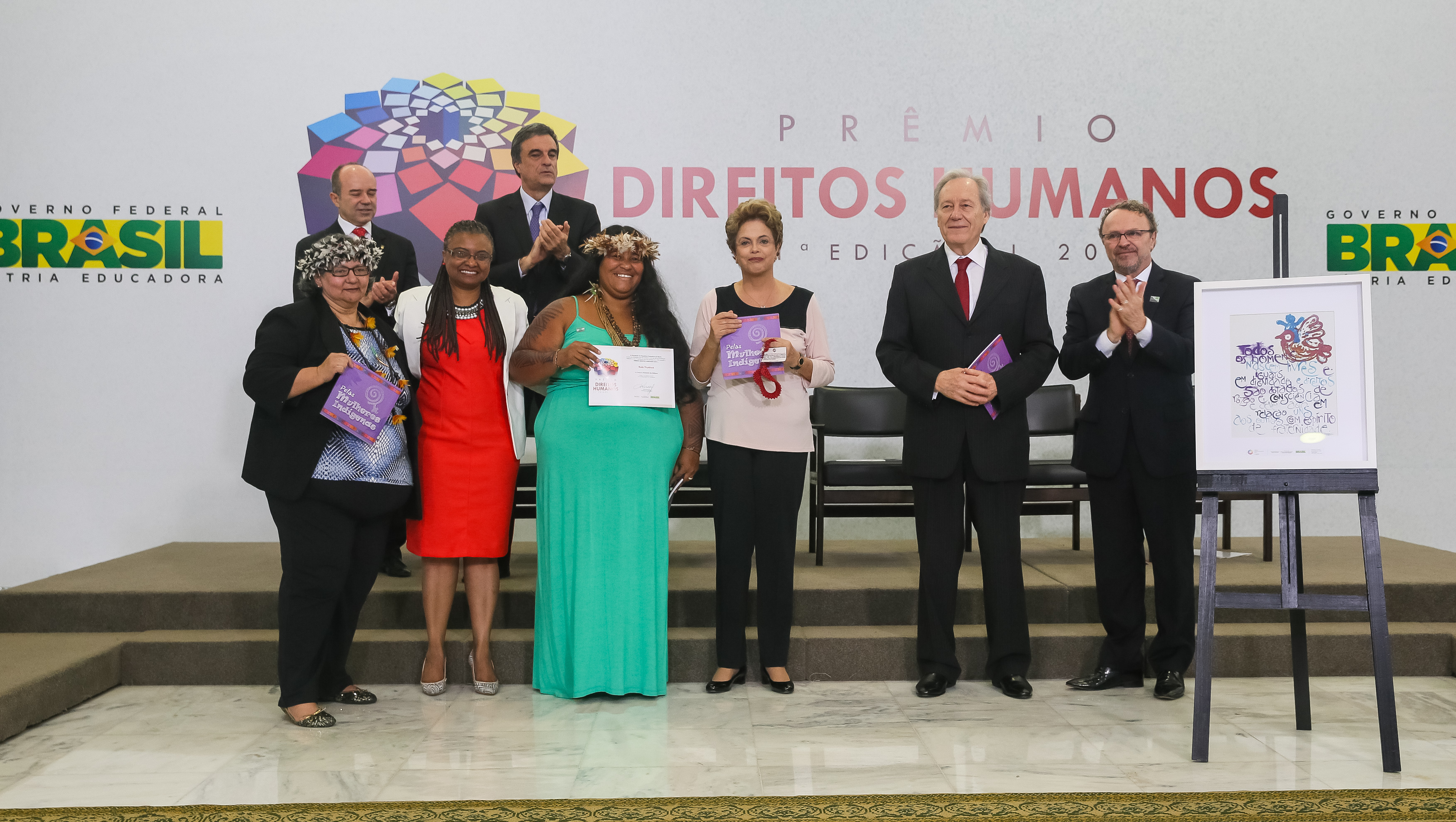 Presidenta Dilma Rousseff entrega o prêmio “Categoria Autonomia das Mulheres” a Arede Thydêwá representa pela Senhora Ivana Cardoso de Jesus na entrega do Prêmio Direitos Humanos 2015 - 21ª Edição. Brasília-DF, 11/12/2015