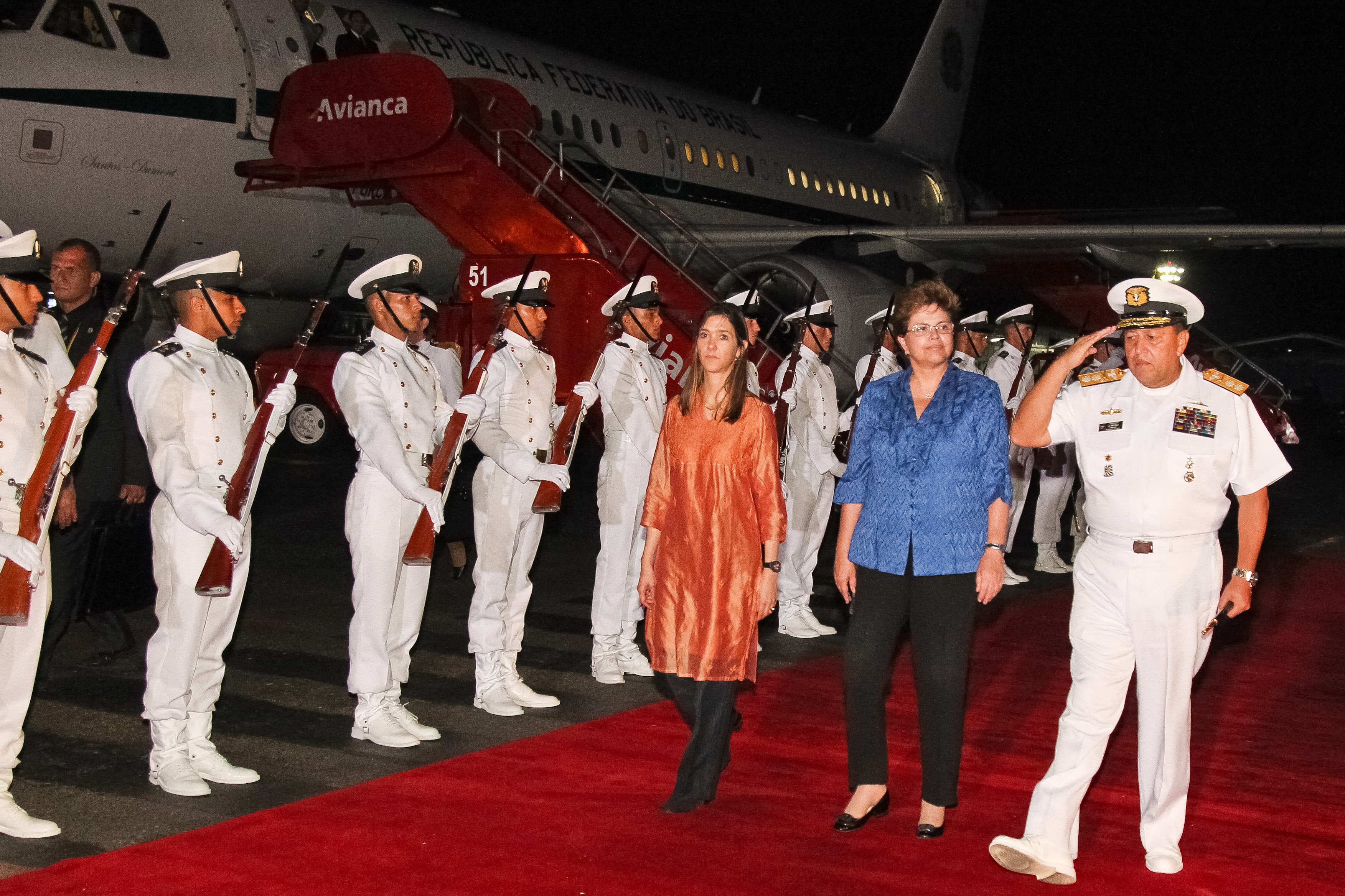13-04-2012 - Presidenta Dilma Rousseff recebe cumprimentos na chegada à Colômbia