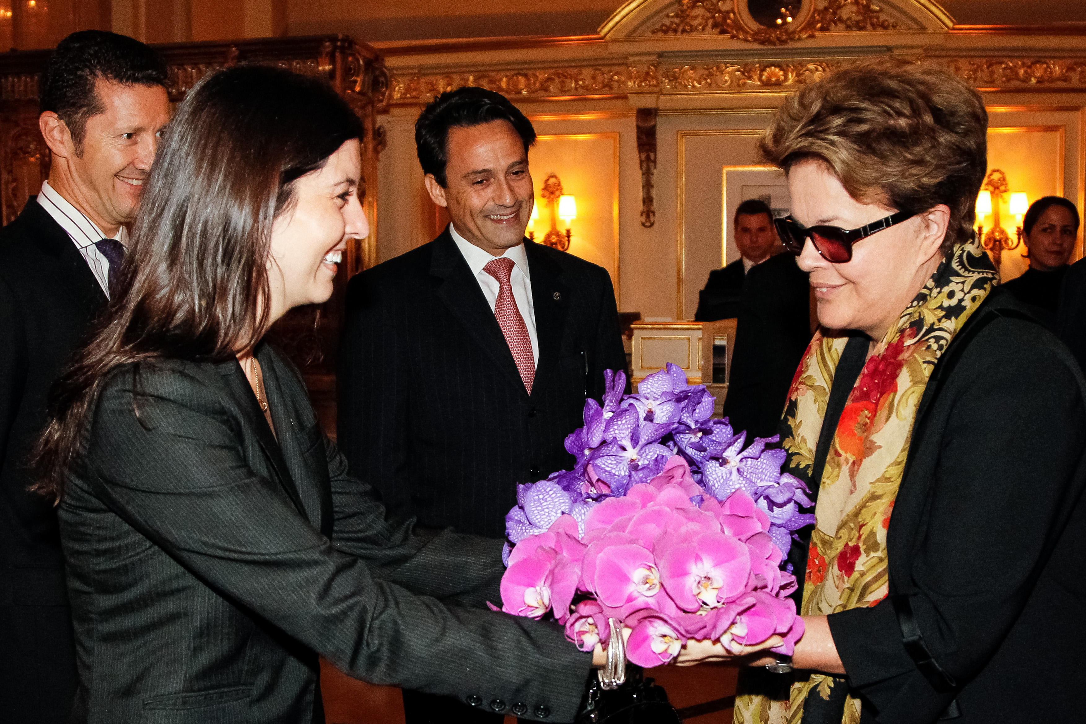 Presidenta Dilma Rousseff recebe cumprimentos na chegada a Nova Iorque. Nova Iorque - EUA, 23/09/2012