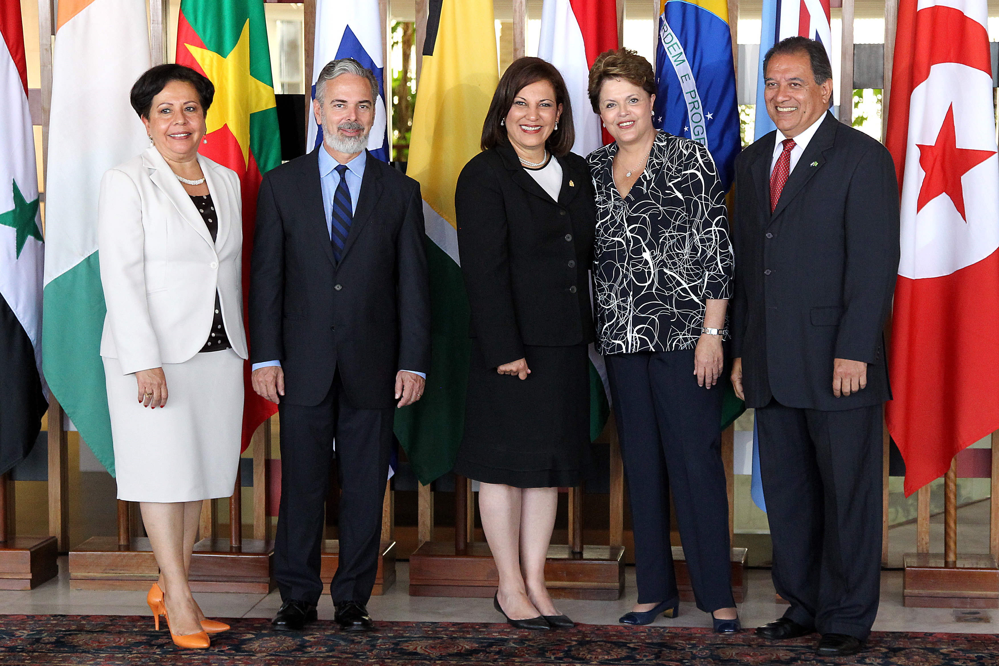 Presidenta Dilma Rousseff com a Sra. Ava Rossana Guevara Pinto, embaixadora de Honduras, durante cerimônia de entrega de cartas credenciais no palácio Itamaraty. Brasília-DF, 23/02/2012