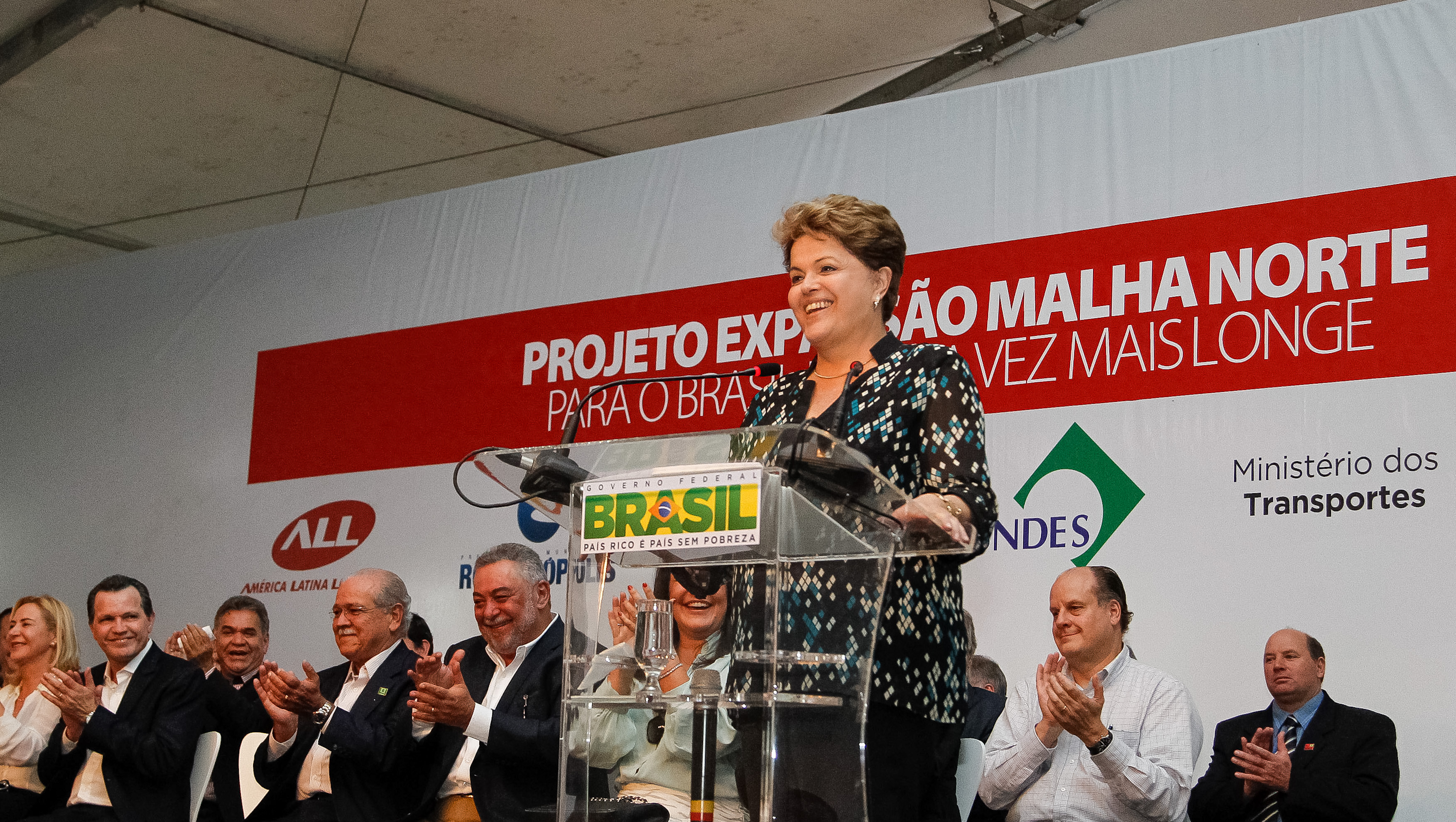 Presidenta Dilma Rousseff durante a cerimônia de inauguração do Projeto Expansão Malha Norte – conclusão da Ferronorte e início da operação do Complexo Intermodal de Rondonópolis. Rondonópolis - MT, 19/09/2013