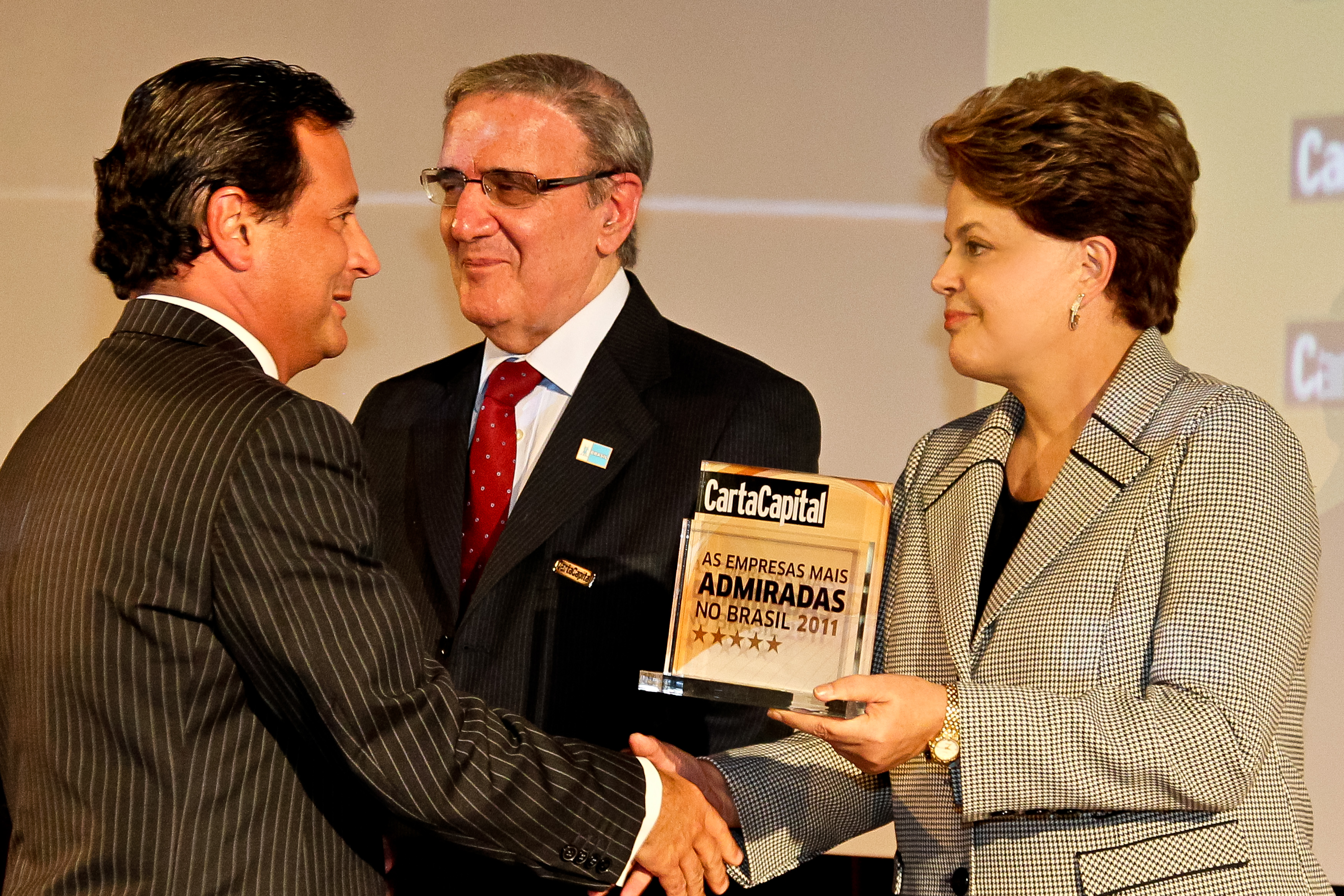 Presidenta Dilma Rousseff entrega o Prêmio ao senhor Zeca Rudge durante cerimônia de entrega do Prêmio “As Empresas Mais Admiradas do Brasil”, oferecido pela revista Carta Capital. São Paulo - SP, 31/10/2011