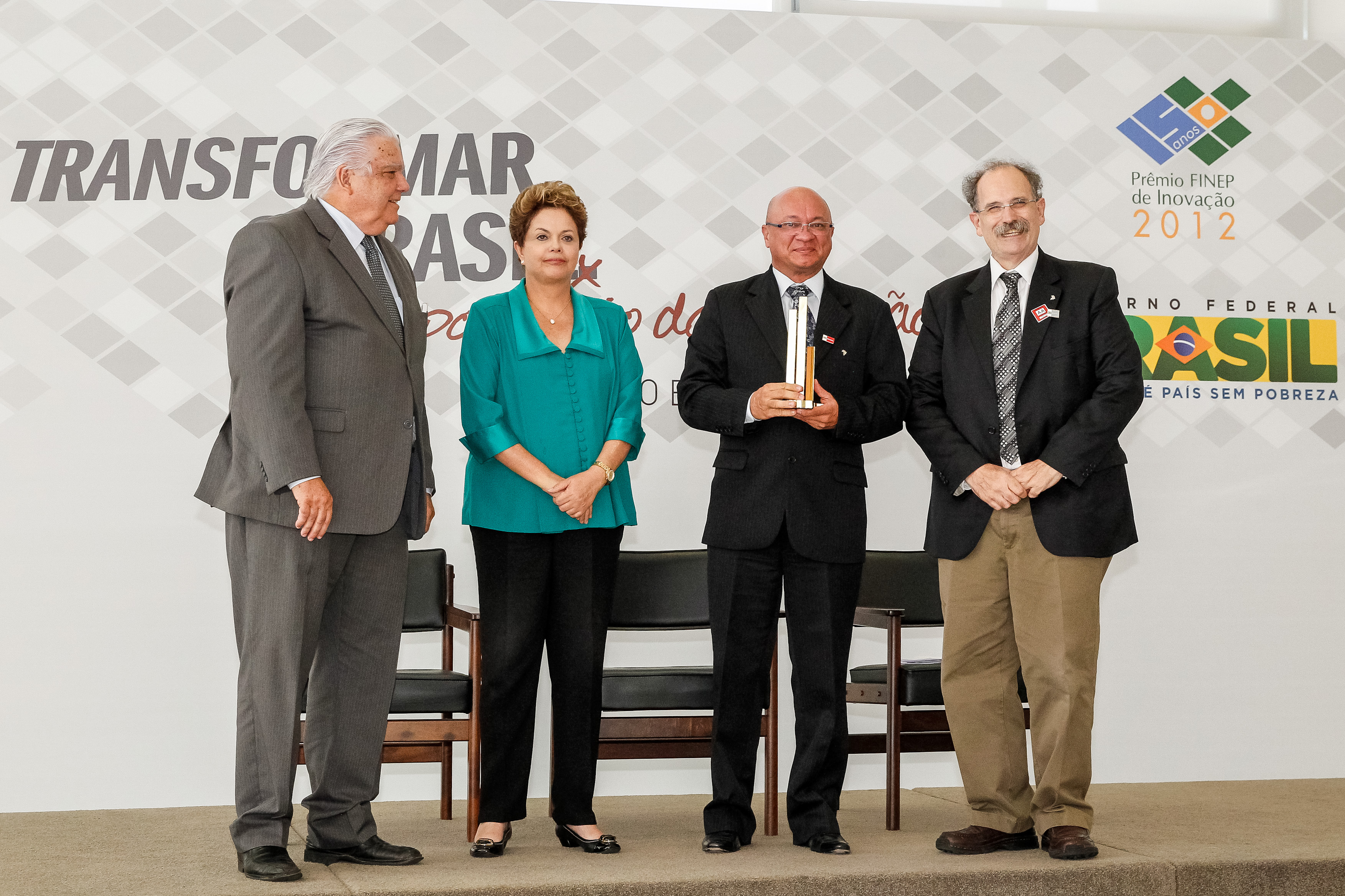 Presidenta Dilma Rousseff entrega prêmio a Siegfried Kreutzfeld durante cerimônia de entrega do Prêmio Finep de Inovação 2012 no Palácio do Planalto. Brasília - DF, 19/12/2012
