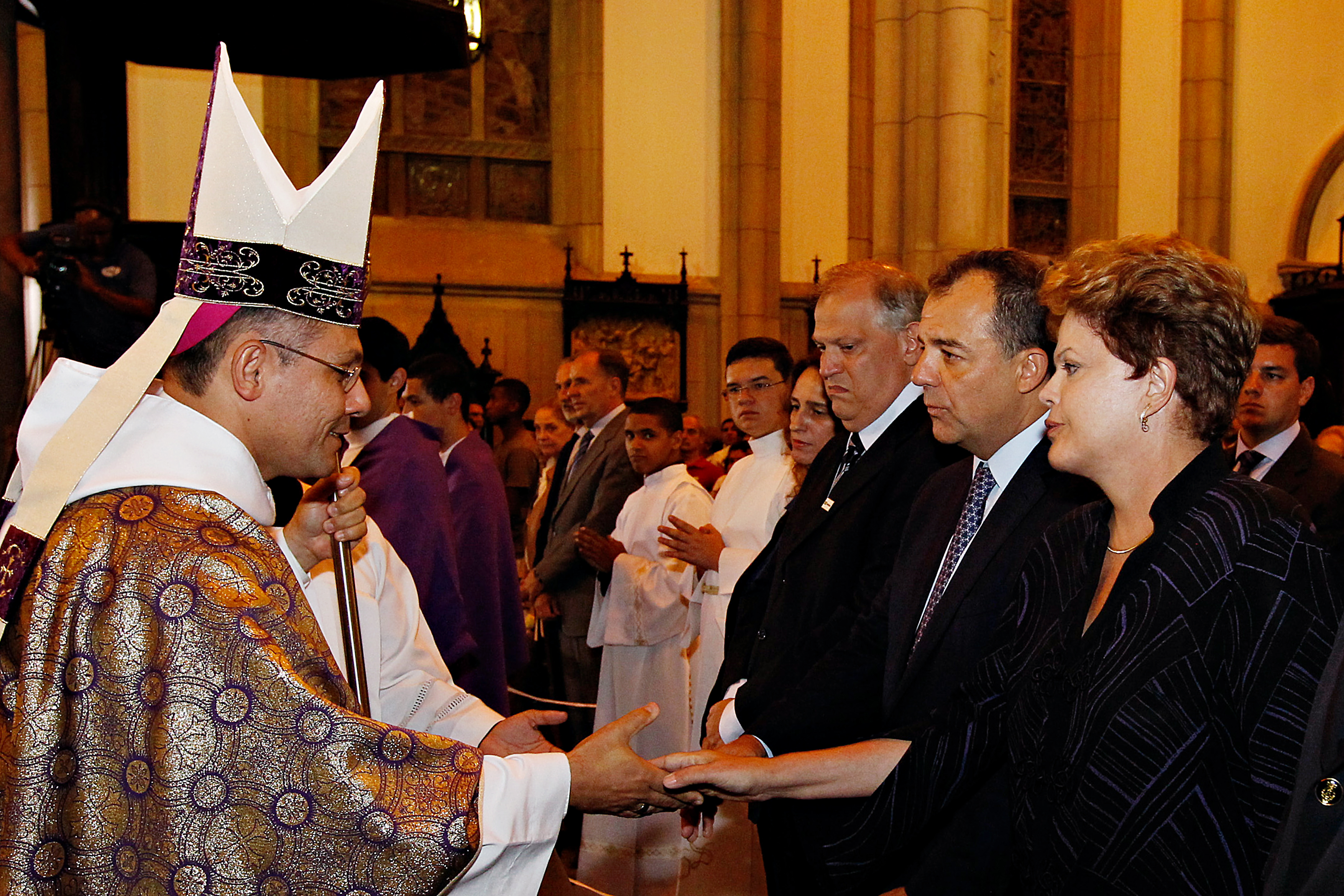 Presidenta Dilma Rousseff cumprimenta Dom Gregório Paixão durante missa em intenção das vítimas dos deslizamentos de terra no município de Petrópolis. Petrópolis-RJ, 25/03/2013