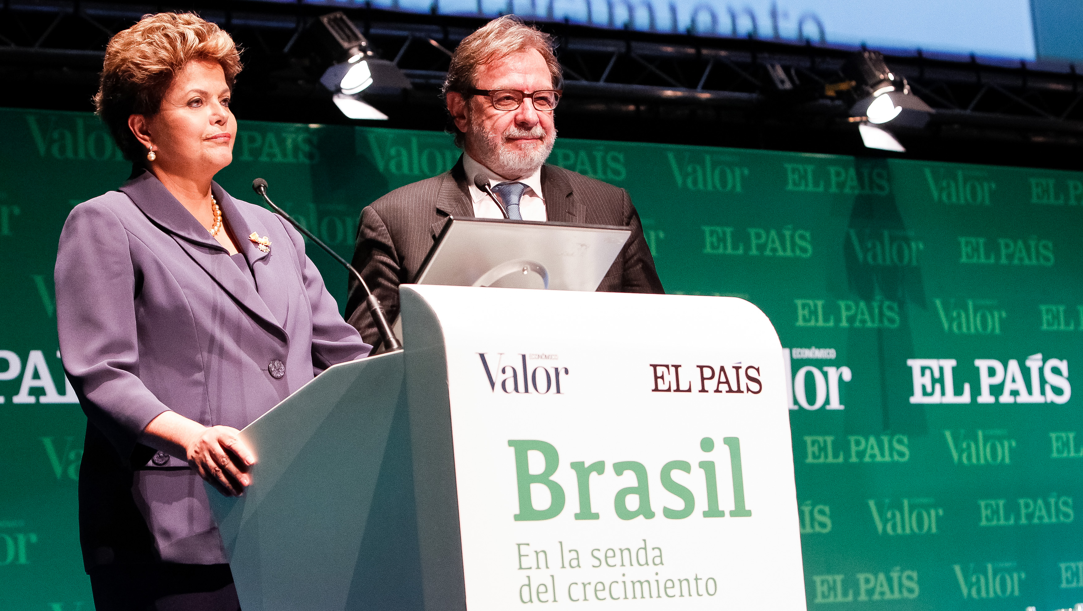 Presidenta Dilma Rousseff e o Sr. Juan Luis Cebriân, durante cerimônia de abertura do seminário " Brasil en la senda del crecimiento ", organizado pelos jornais El Pais e Valor Econômico. Madri - Espanha, 19/11/2012