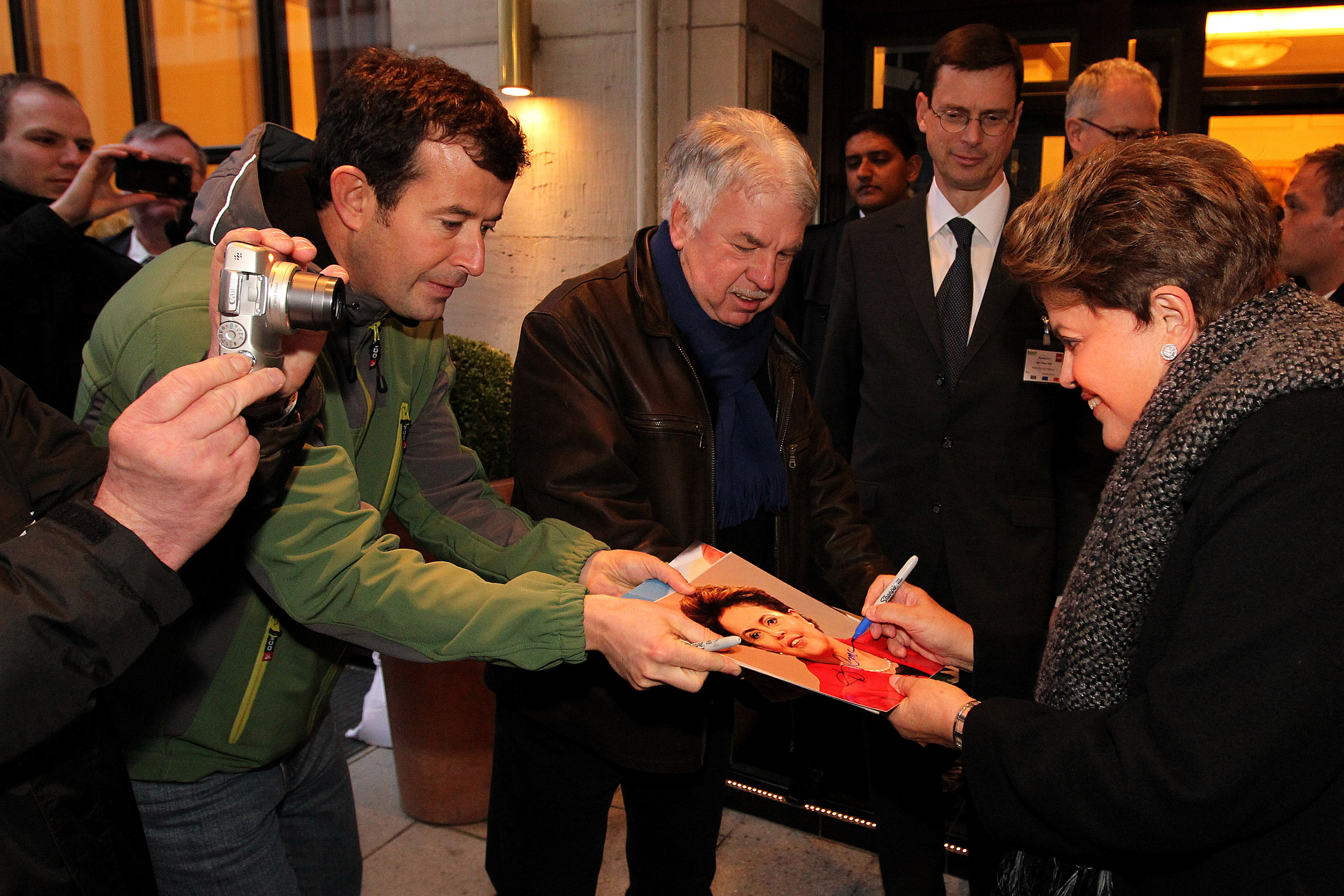 Presidenta Dilma Rousseff cumprimenta populares durante saída do hotel Luisenhof. Hannover-Alemanha, 05/03/2012