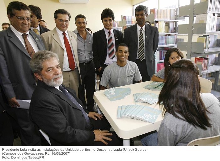 Presidente Lula conversa com estudantes durante visita à Unidade de Ensino Descentralizada (Uned) Guarus, vinculada ao Cefet de Campos.