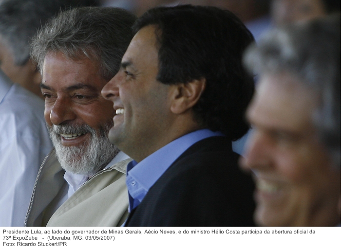 Presidente Lula conversa com o governador de Minas Gerais, Aécio Neves, durante abertura oficial da 73ª ExpoZebu.