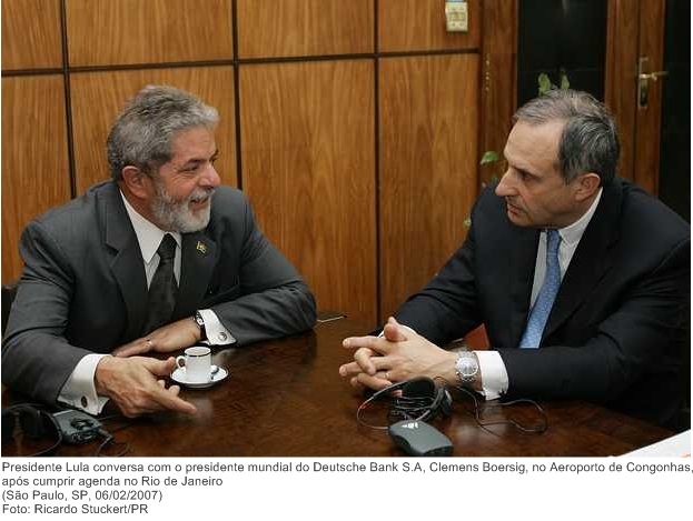Presidente Lula conversa com o presidente mundial do Deutsche Bank S.A, Clemens Boersig, no Aeroporto de Congonhas, após cumprir agenda no Rio de Janeiro.