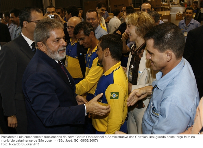 Presidente Lula cumprimenta funcionários do novo Centro Operacional e Administrativo dos Correios, inaugurado nesta terça-feira no município catarinense de São José.