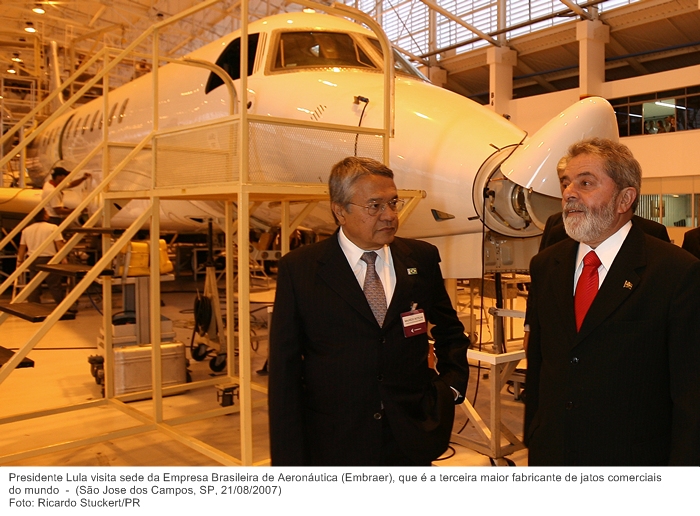 Presidente Lula visita sede da Empresa Brasileira de Aeronáutica (Embraer), que é a terceira maior fabricante de jatos comerciais do mundo.