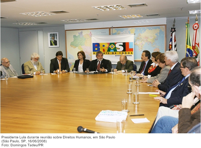 Presidente Lula durante reunião sobre Direitos Humanos, em São Paulo.